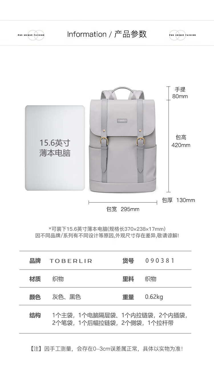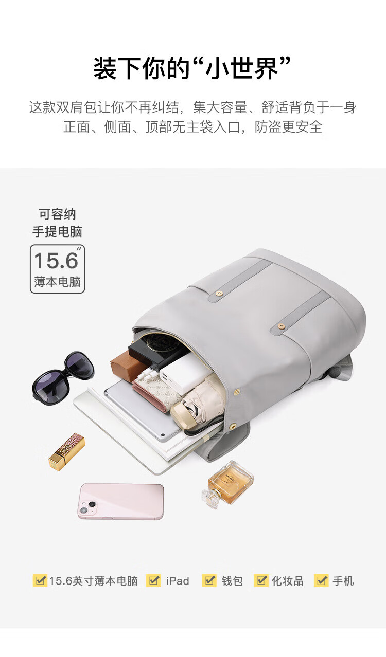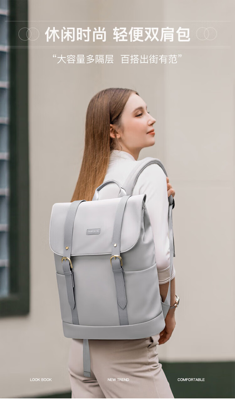休闲时尚 轻便双肩包;大容量多隔层 百搭出街有范;高密度防泼水面料