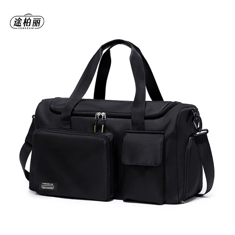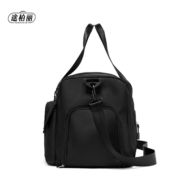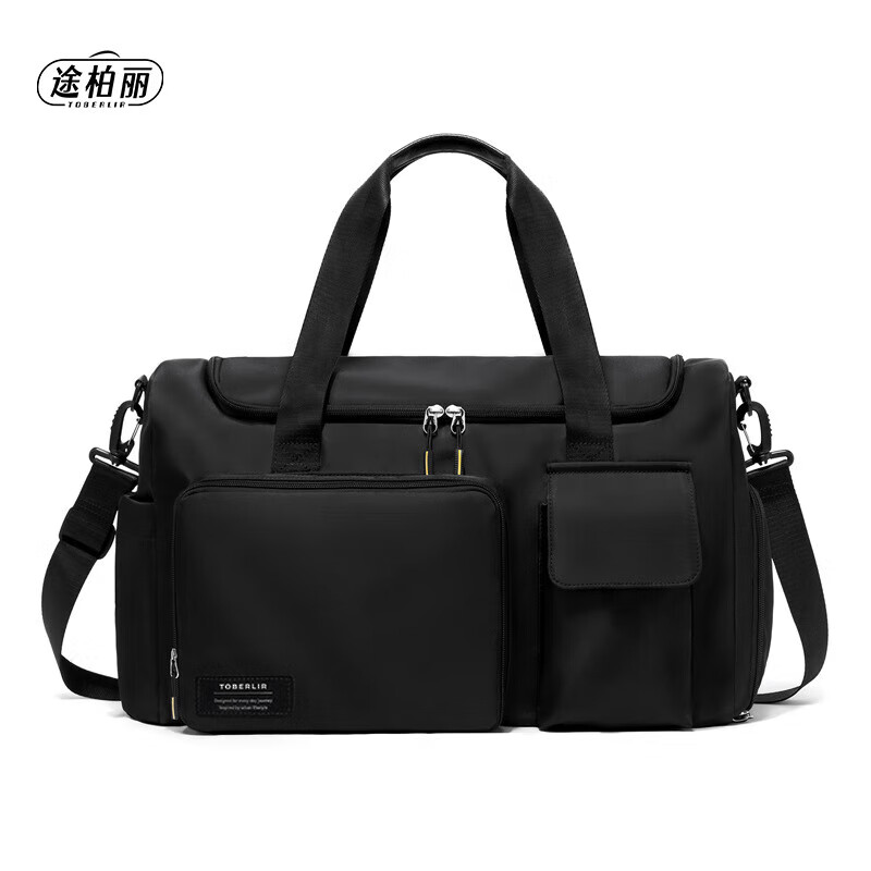 防泼水面料,一擦即干,轻松打理;多隔层收纳,轻松携带随行物品;独立鞋子收纳仓,干湿分离收纳袋,方便出行