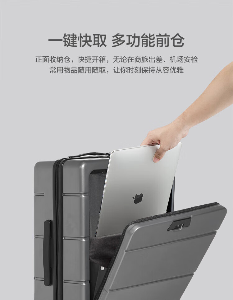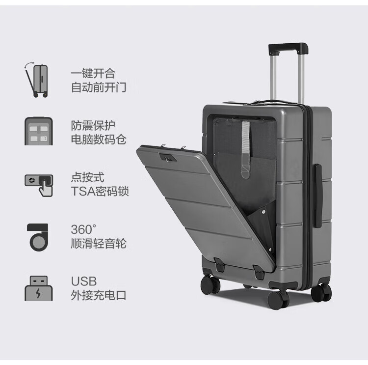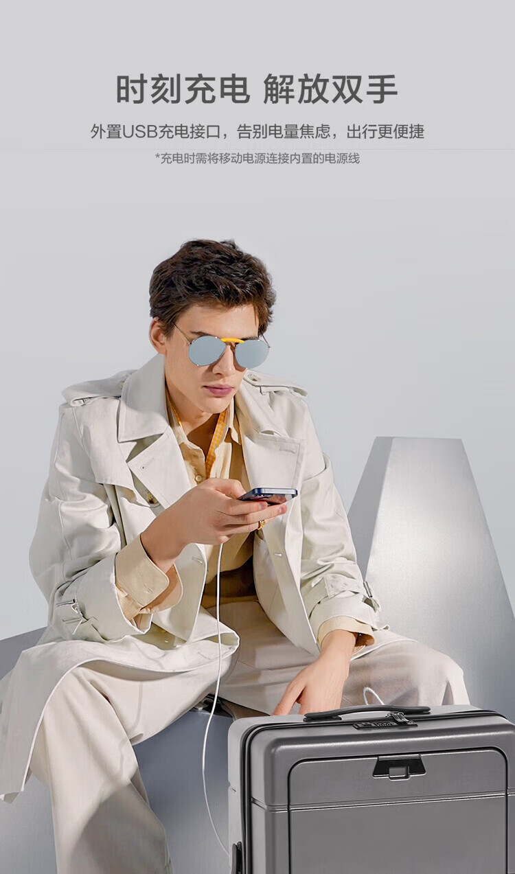 一键前开盖,方便取拿随性物品;ABS+PC材质,抗摔耐磨;外置USB接口,方便手机充电
