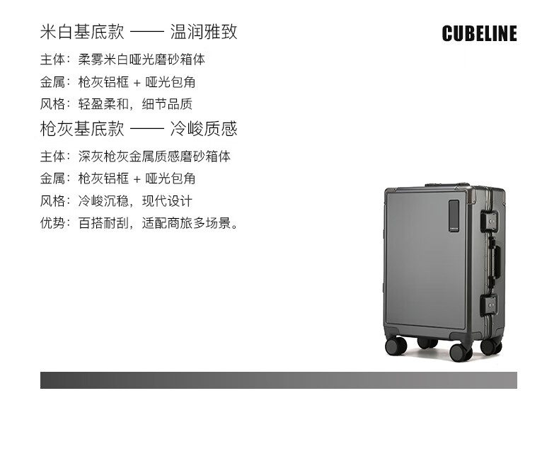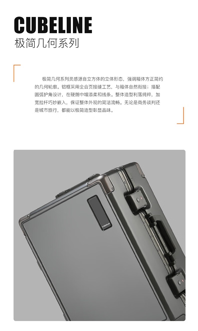 极简几何系列,整体造型利落纯粹;PC材质,抗摔耐磨;高硬度6系铝合金边框,承重抗压不变形
