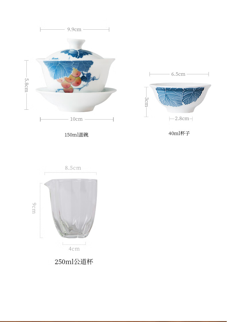 配置清单:盖碗*1、杯子*6、公道杯*1