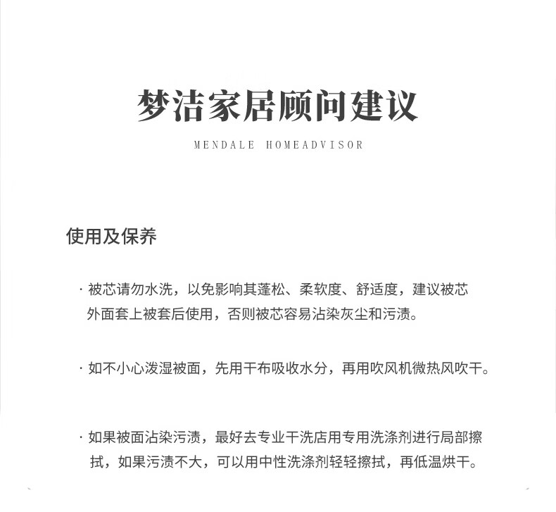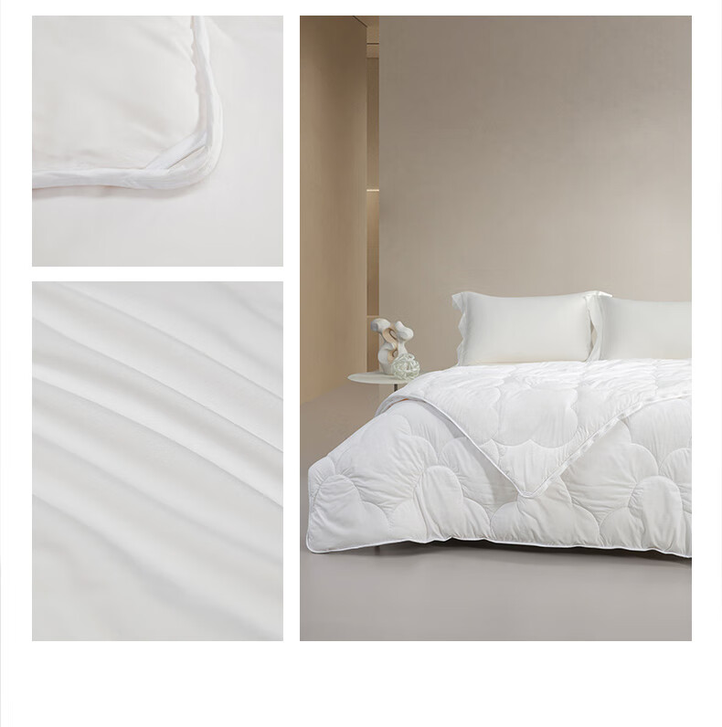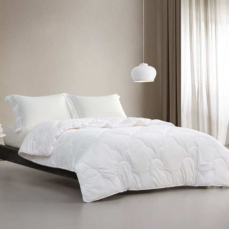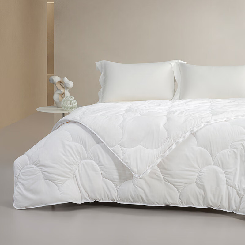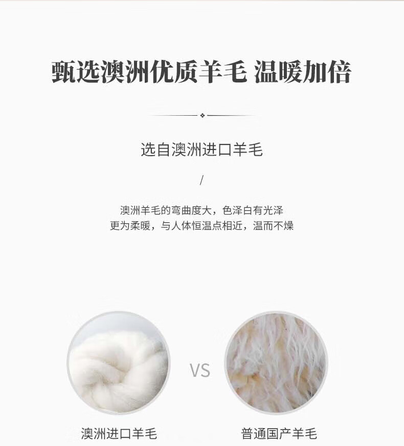 约22um的细羊毛作为填充内芯,柔软贴合,蓬松保暖;黄金配比,均匀混纺,结合羊毛良好的保暖性更舒适;睡眠“绗缝空气槽”设计,体感舒适