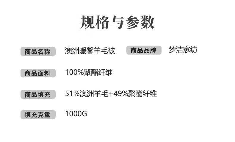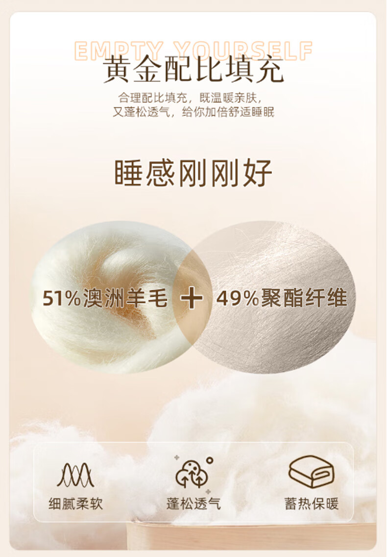 填充物:51%澳洲羊毛+49%聚酯纤维