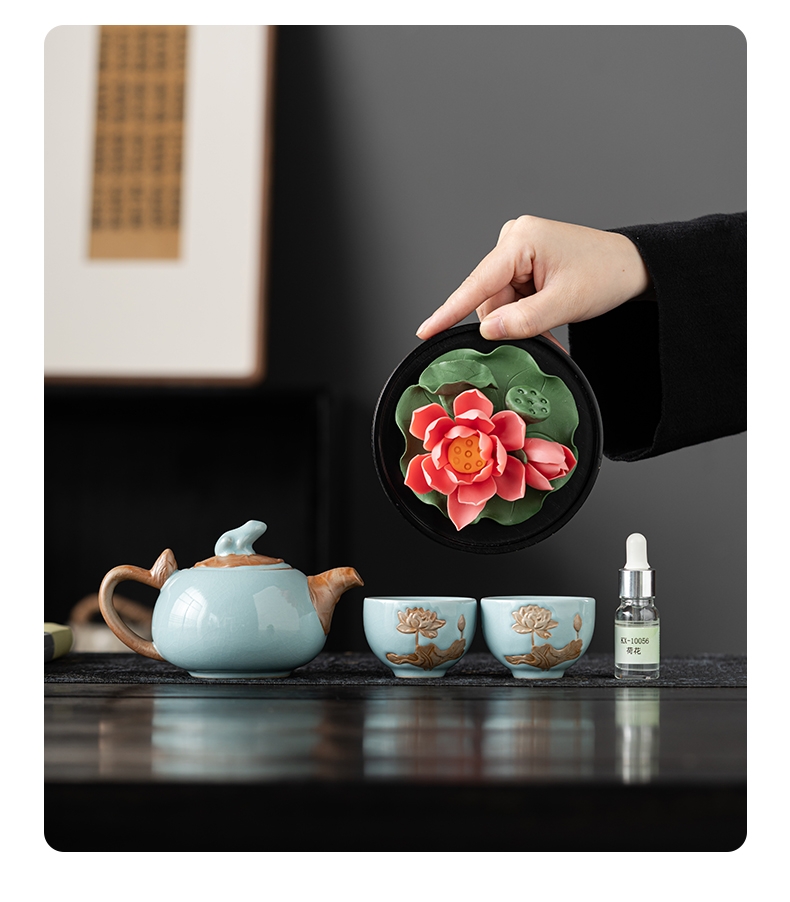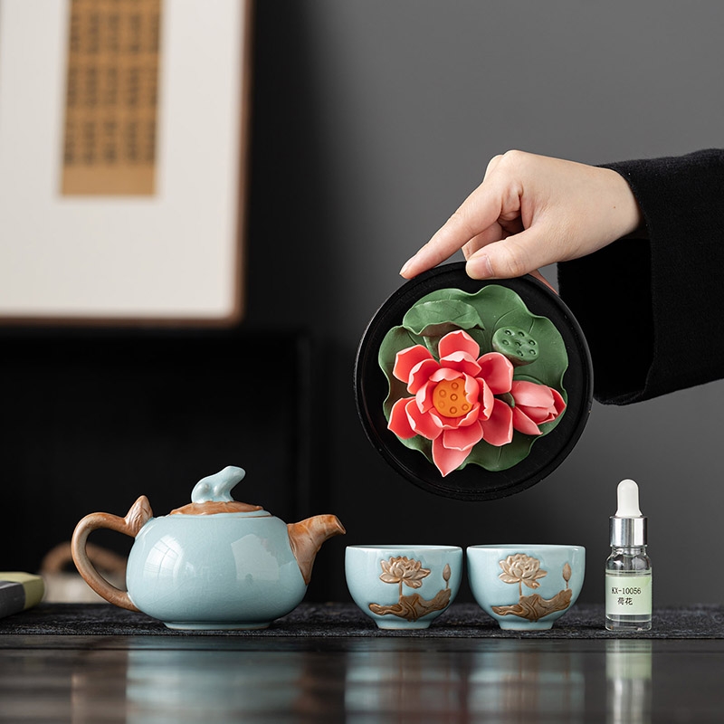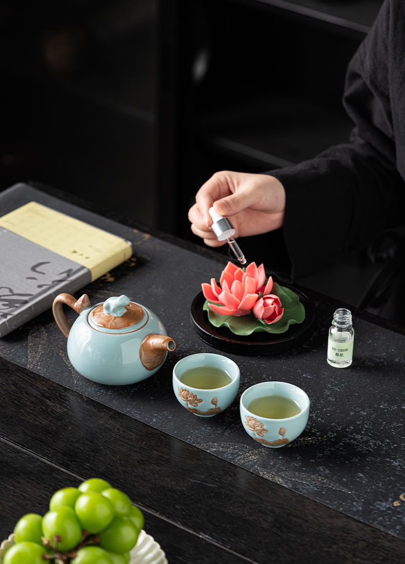 宏裕 非遗陶瓷荷花1壶2杯精油香氛JHY-CJ-198
