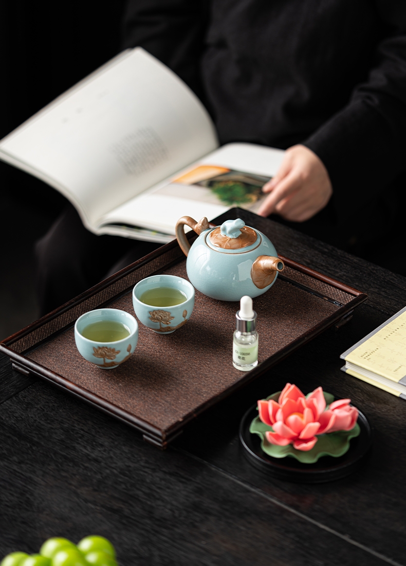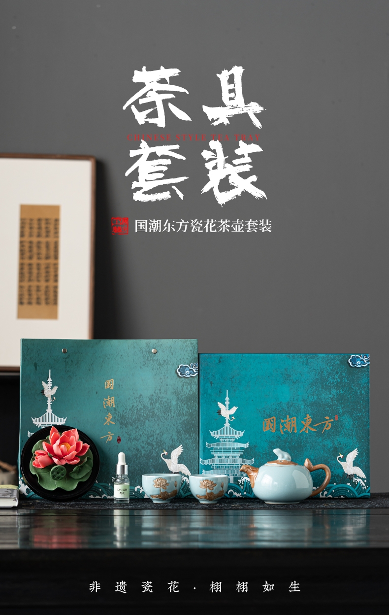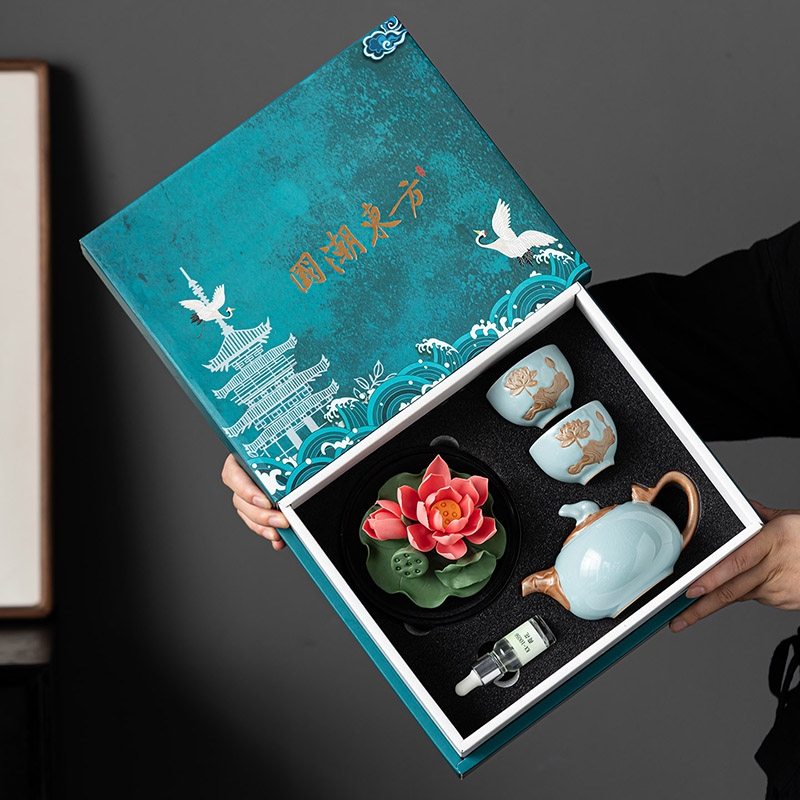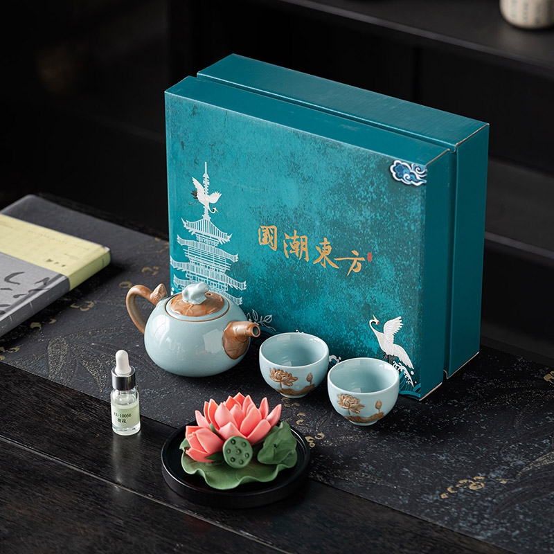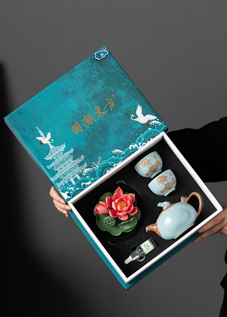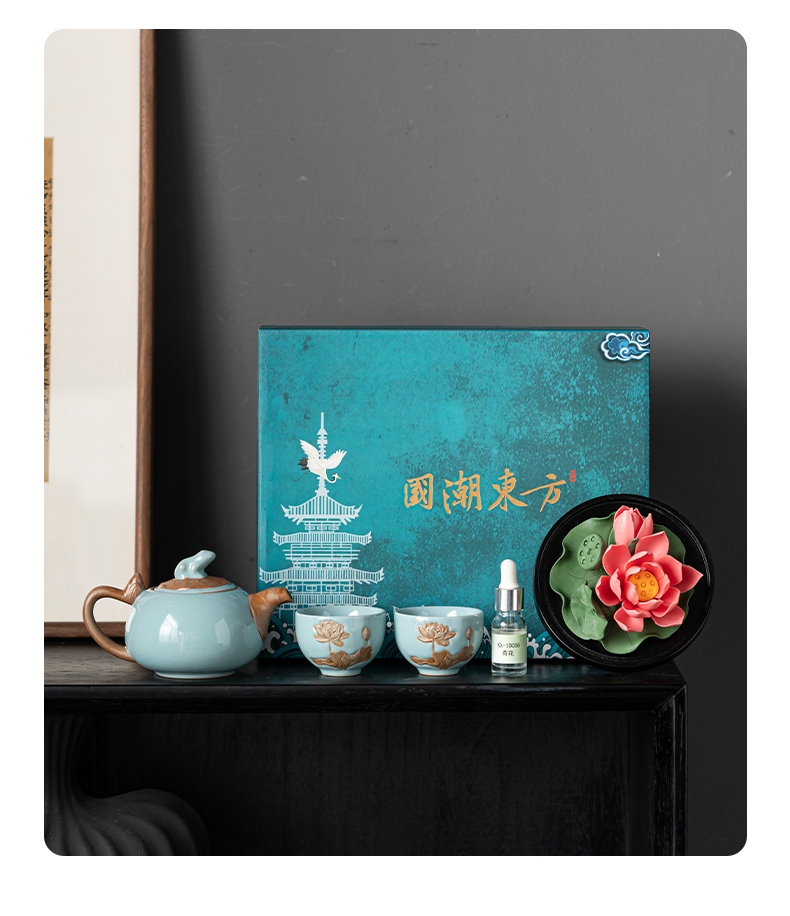 配置:壶*1 品杯*2 荷花*1 精油*1 礼盒*1