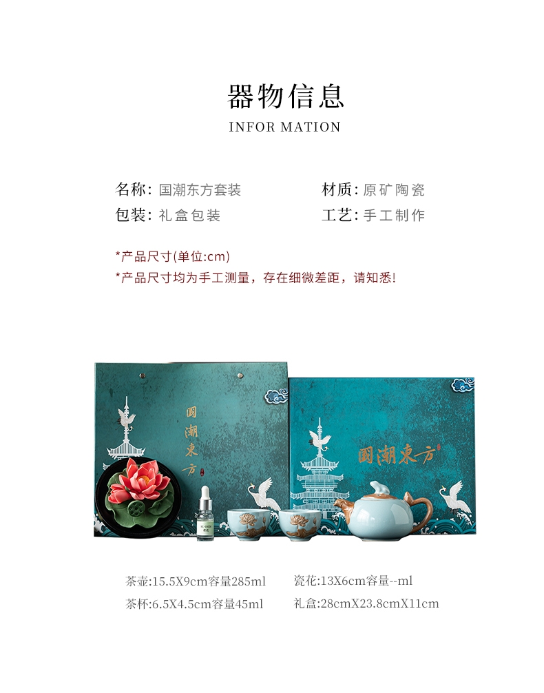 配置清单:壶*1 品杯*2 荷花*1 精油*1 礼盒*1
