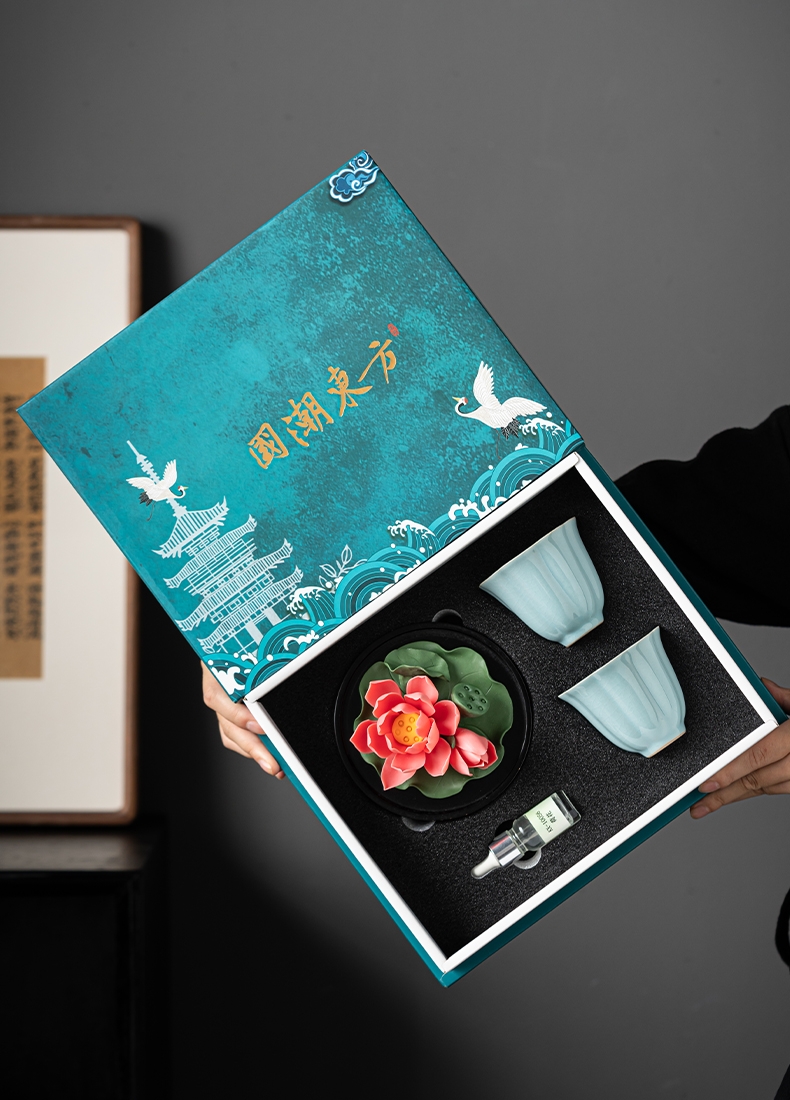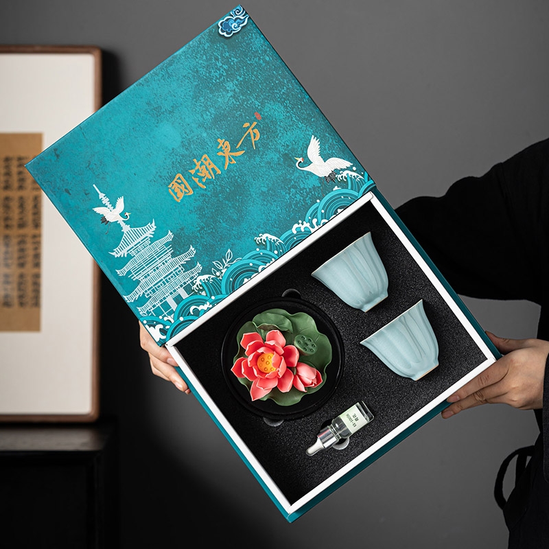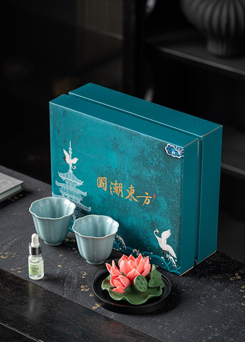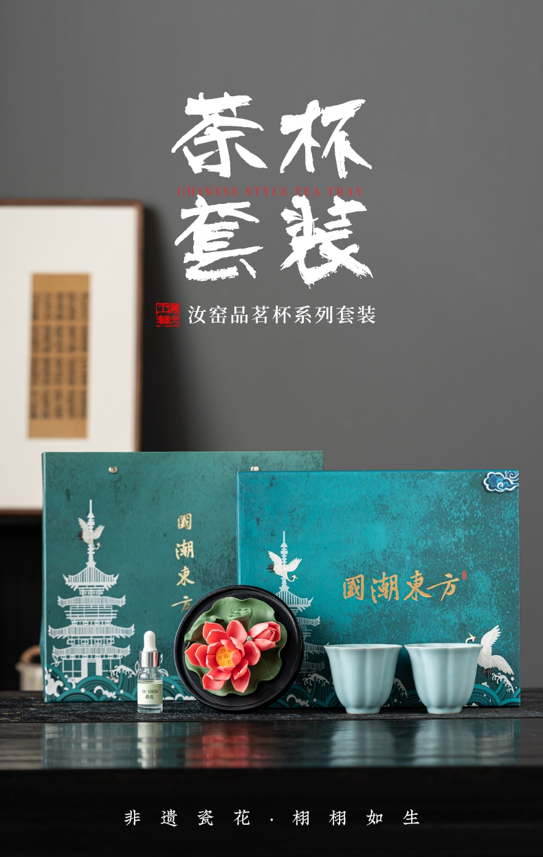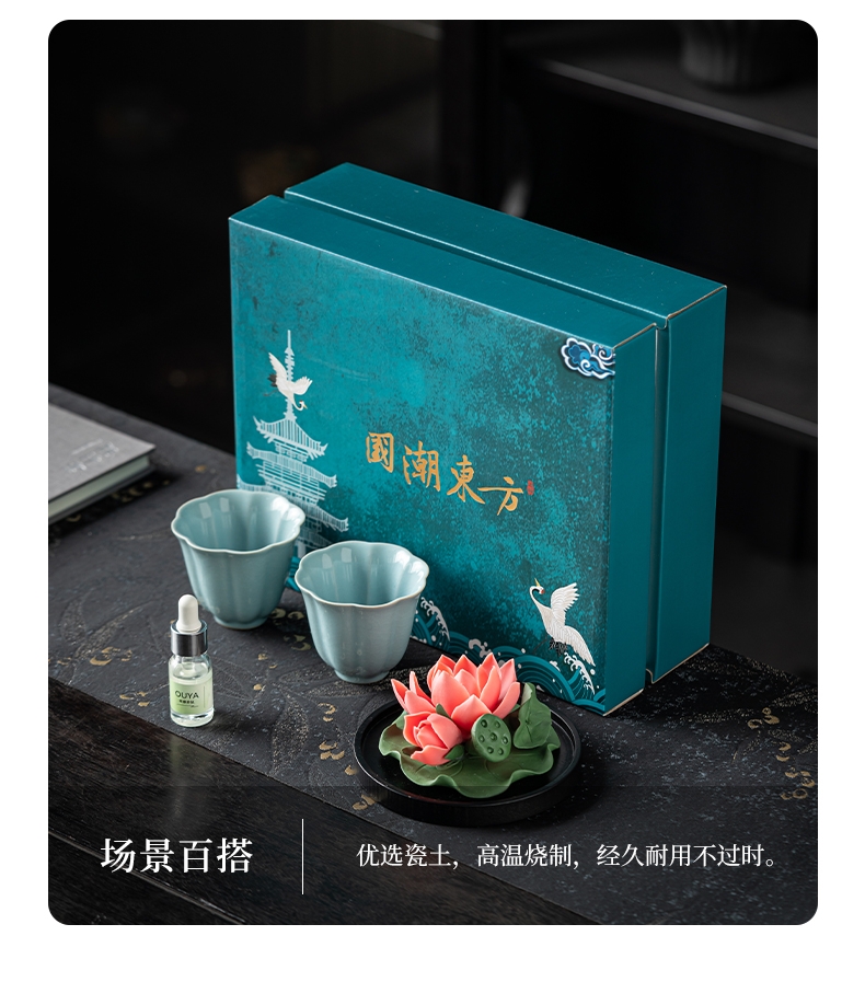 宏裕 非遗荷花汝窑开片对杯香氛礼HYXQ1060