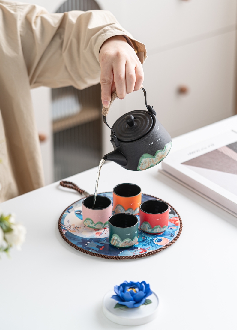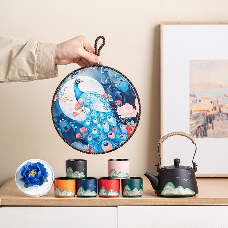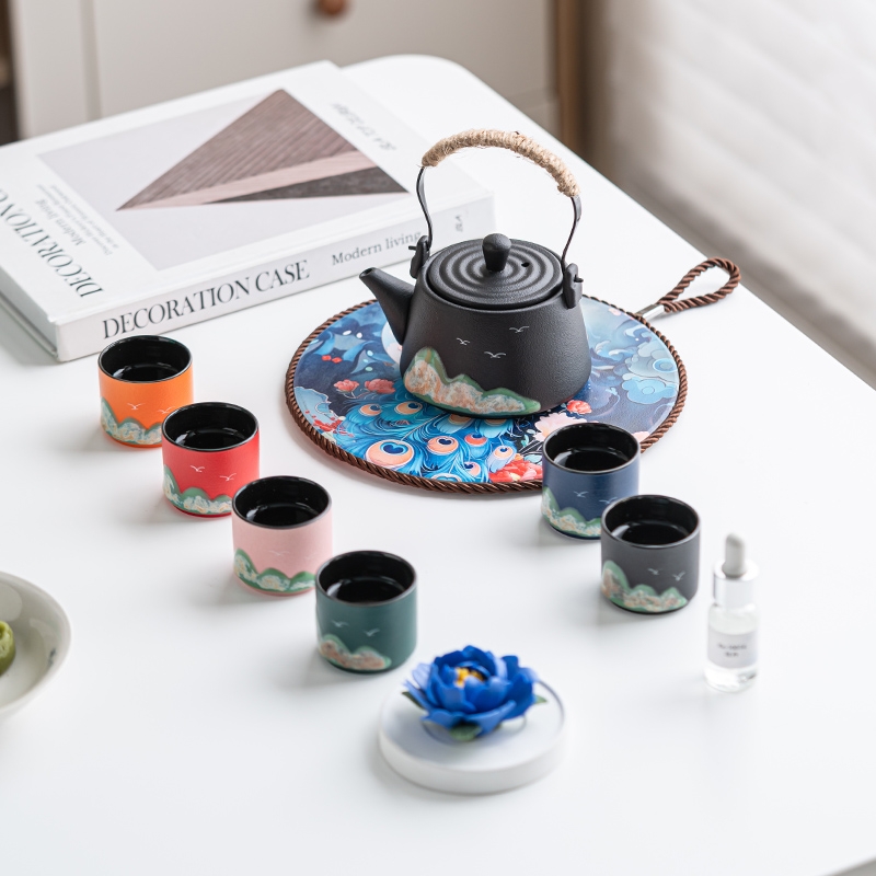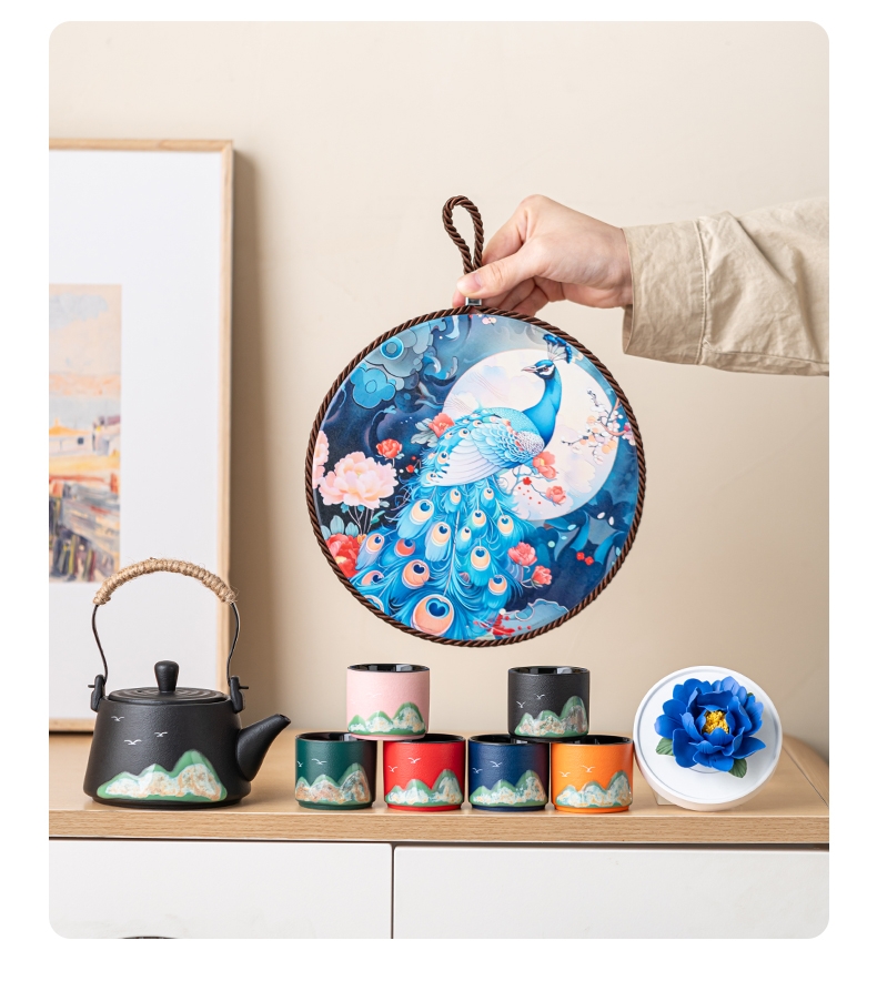 配置:提梁壶*1 品茗杯*6 国花*1 精油*1 圆茶盘*1 礼盒*1