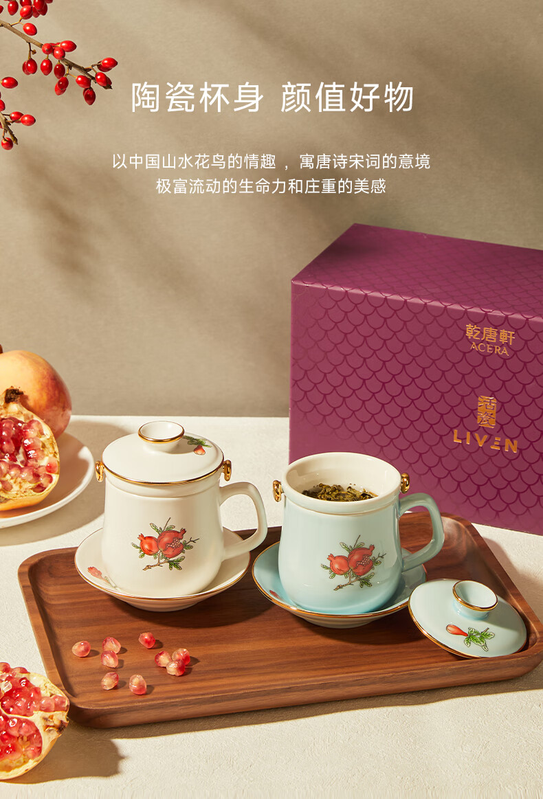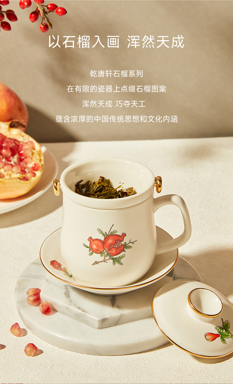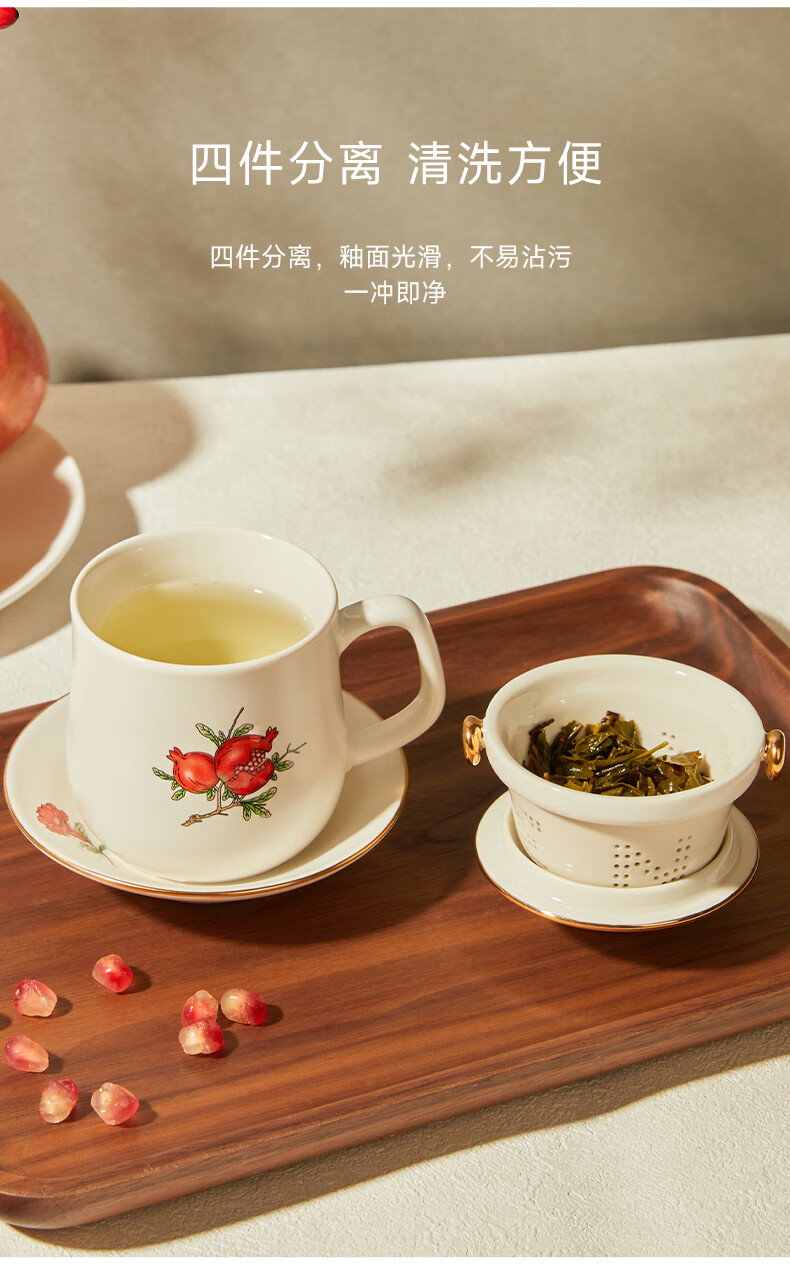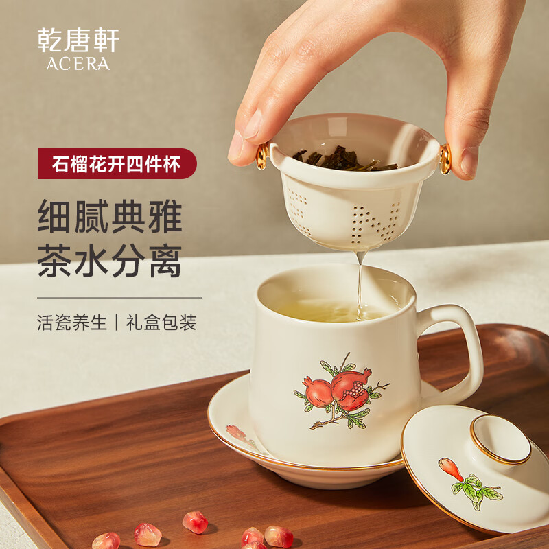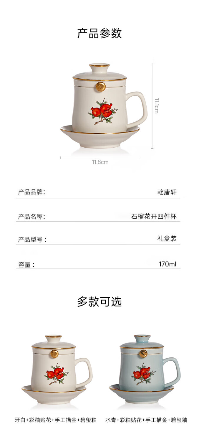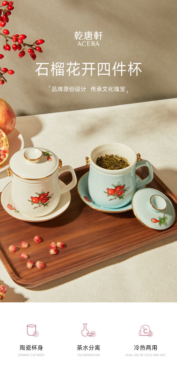 乾唐轩 石榴花开四件杯水杯170ml1A01E00060401/1A01E00060402