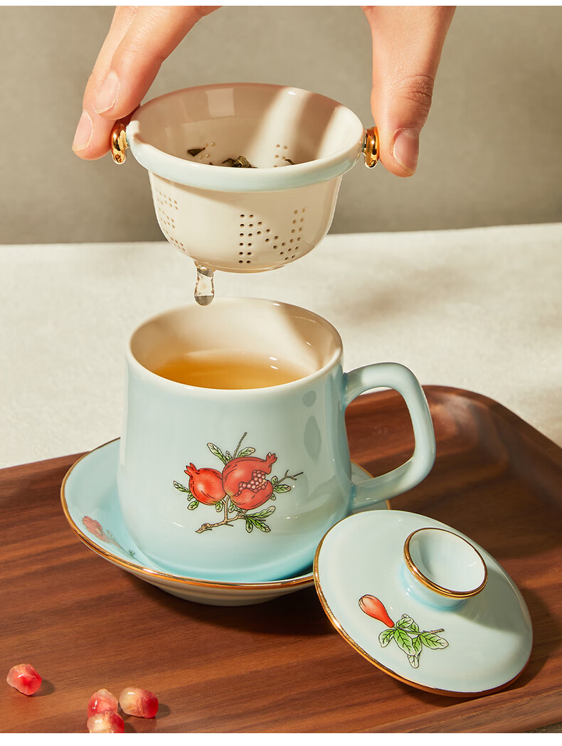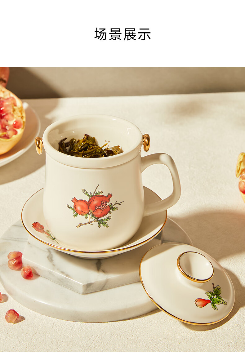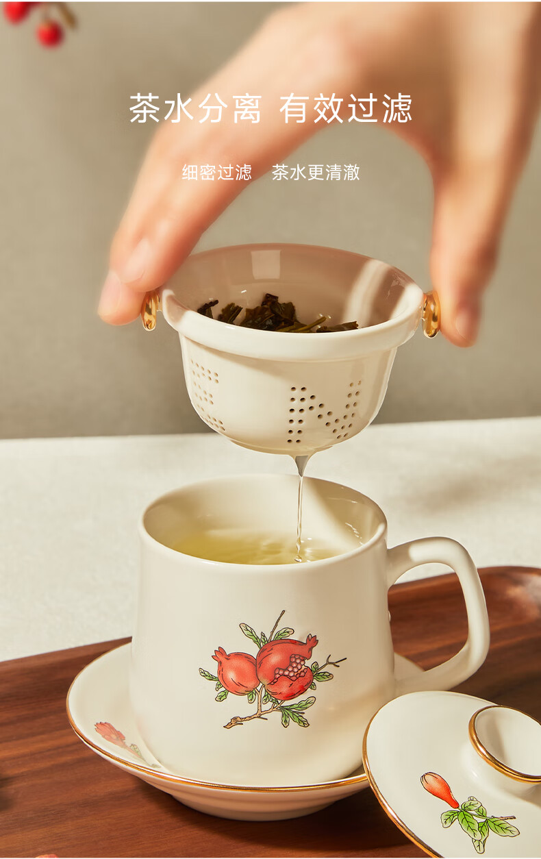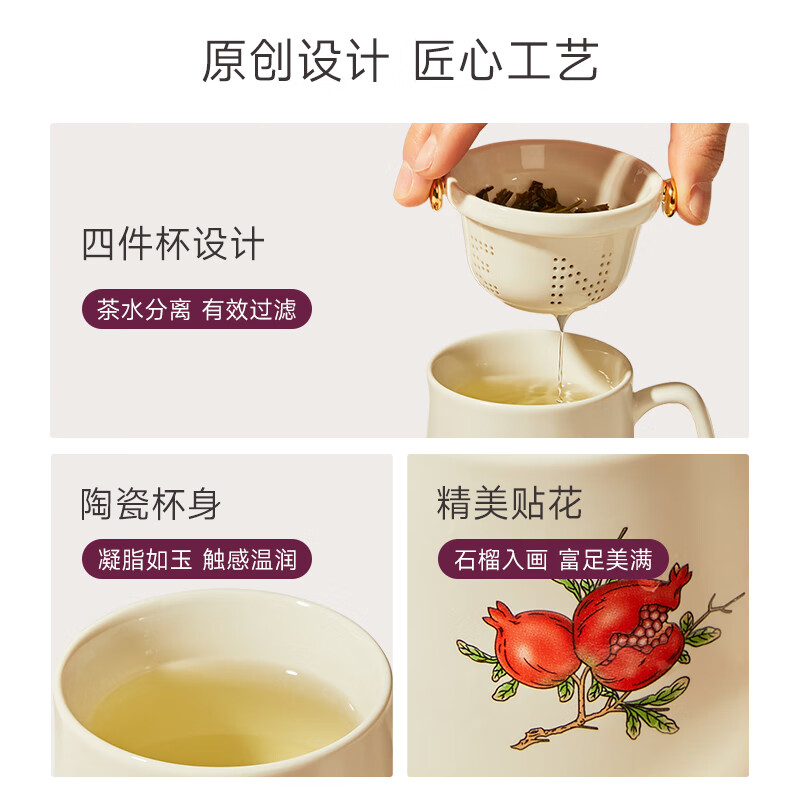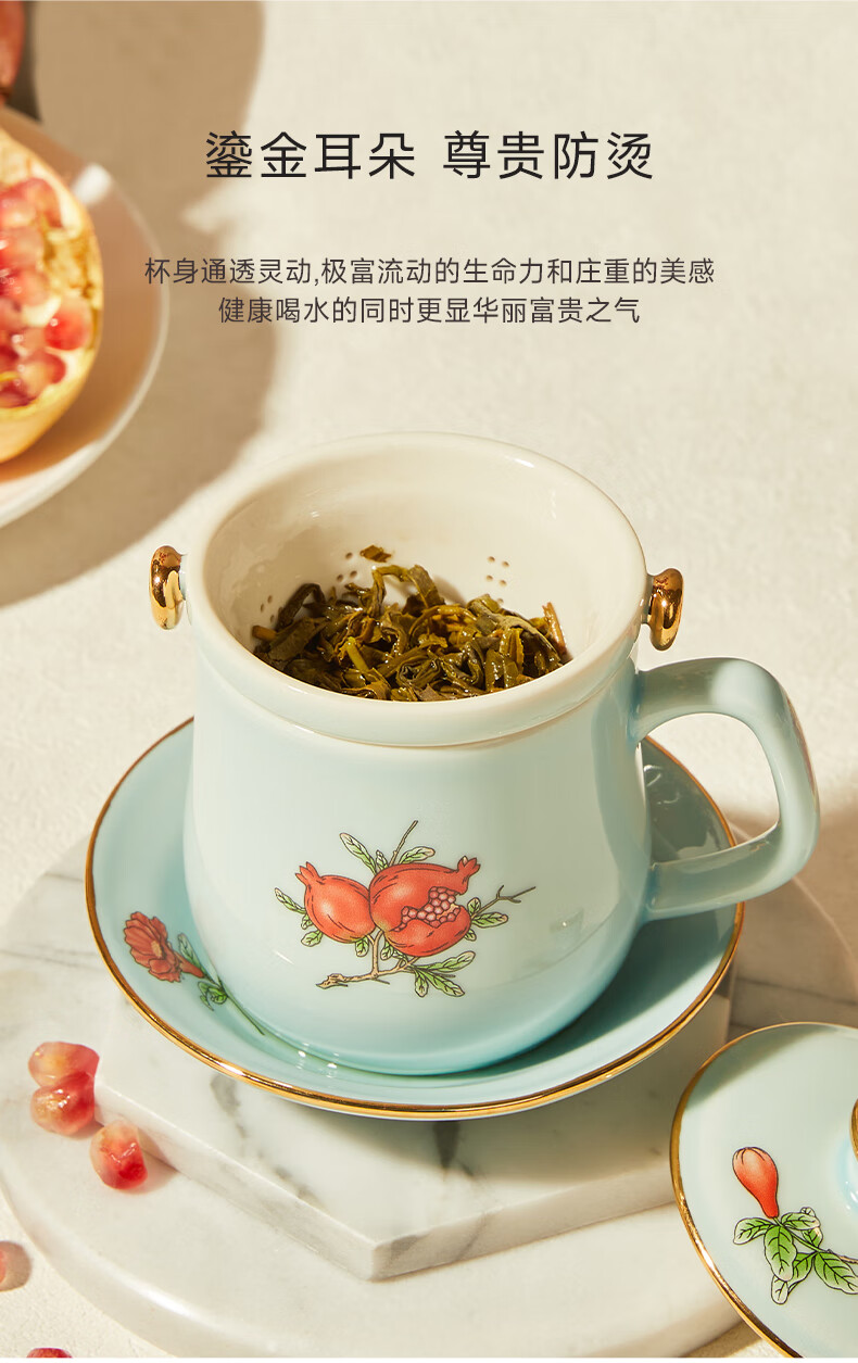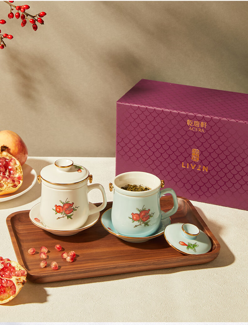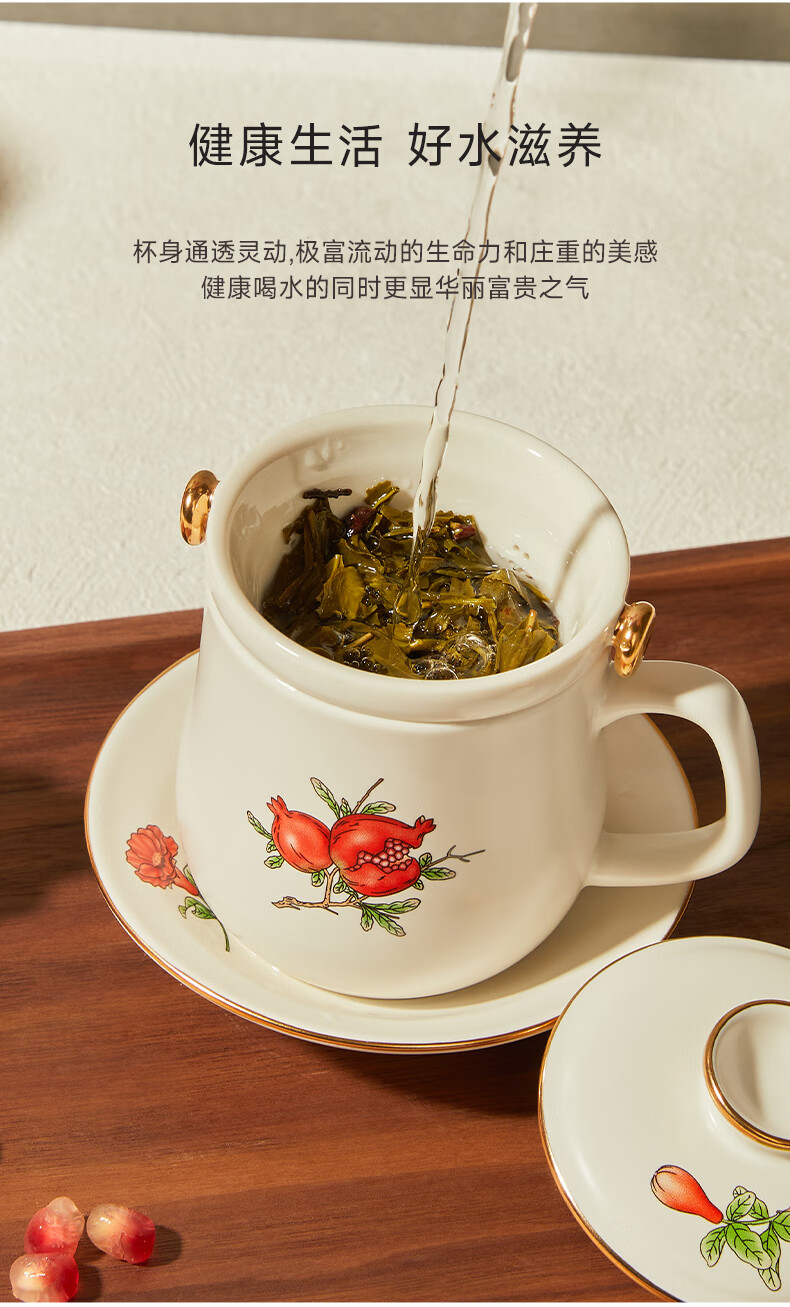乾唐轩 石榴花开四件杯水杯170ml1A01E00060401/1A01E00060402