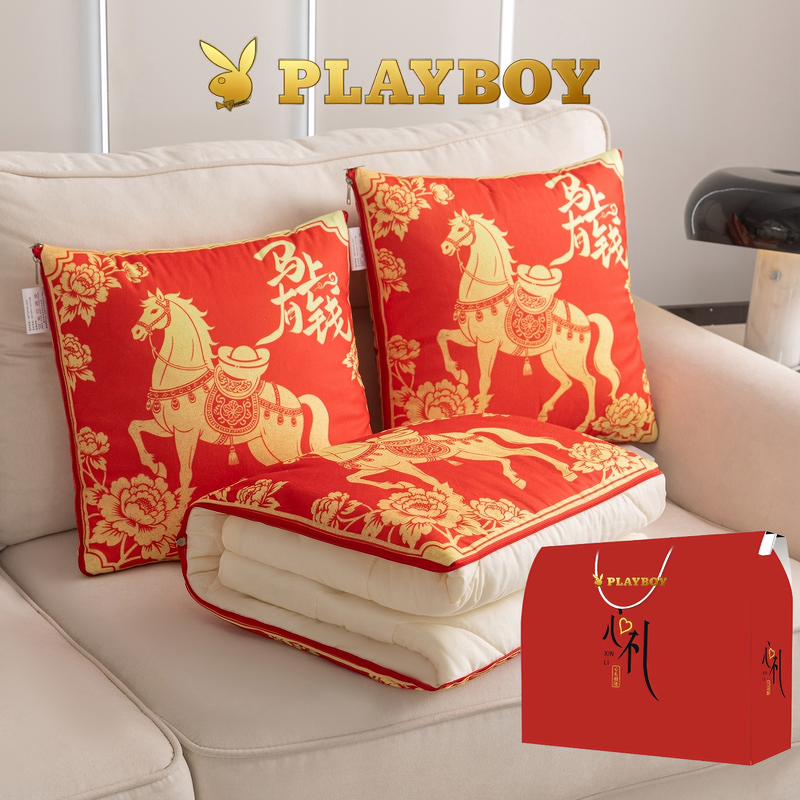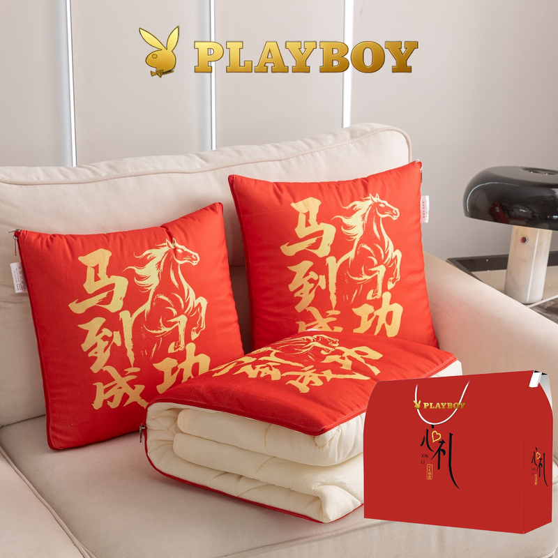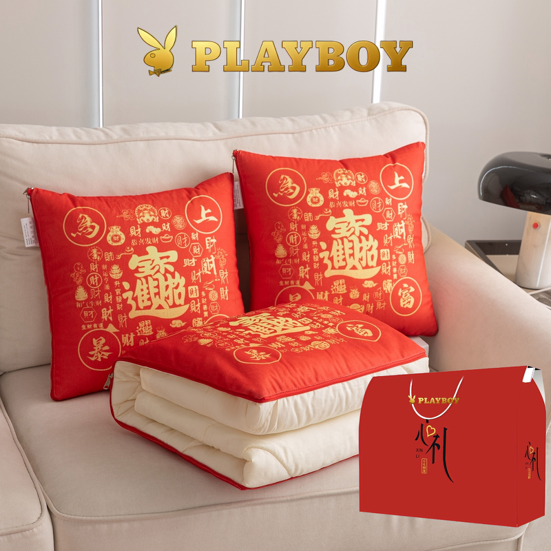花花公子 开门红马上暴富抱短毛绒抱枕被PLAYBOY-146