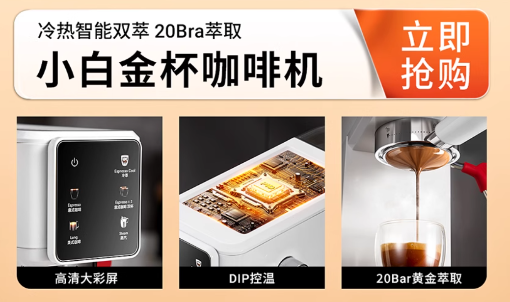 低温低压冷萃技术;升级IMD 触摸屏设计,粉量萃取量可自定义·预浸泡;700+ 萃取网孔,萃取均匀细腻不喷溅
