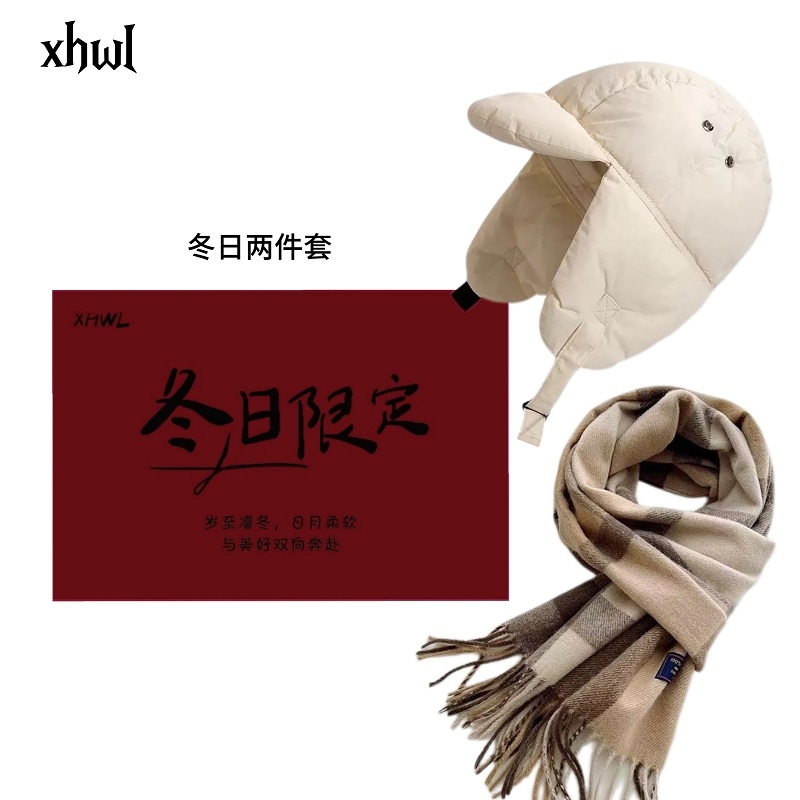 配置清单:冬日限定礼盒*1 羽绒棉雷锋帽*1 拼色围巾*1