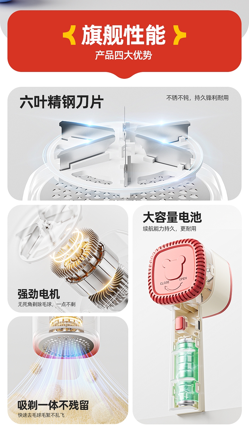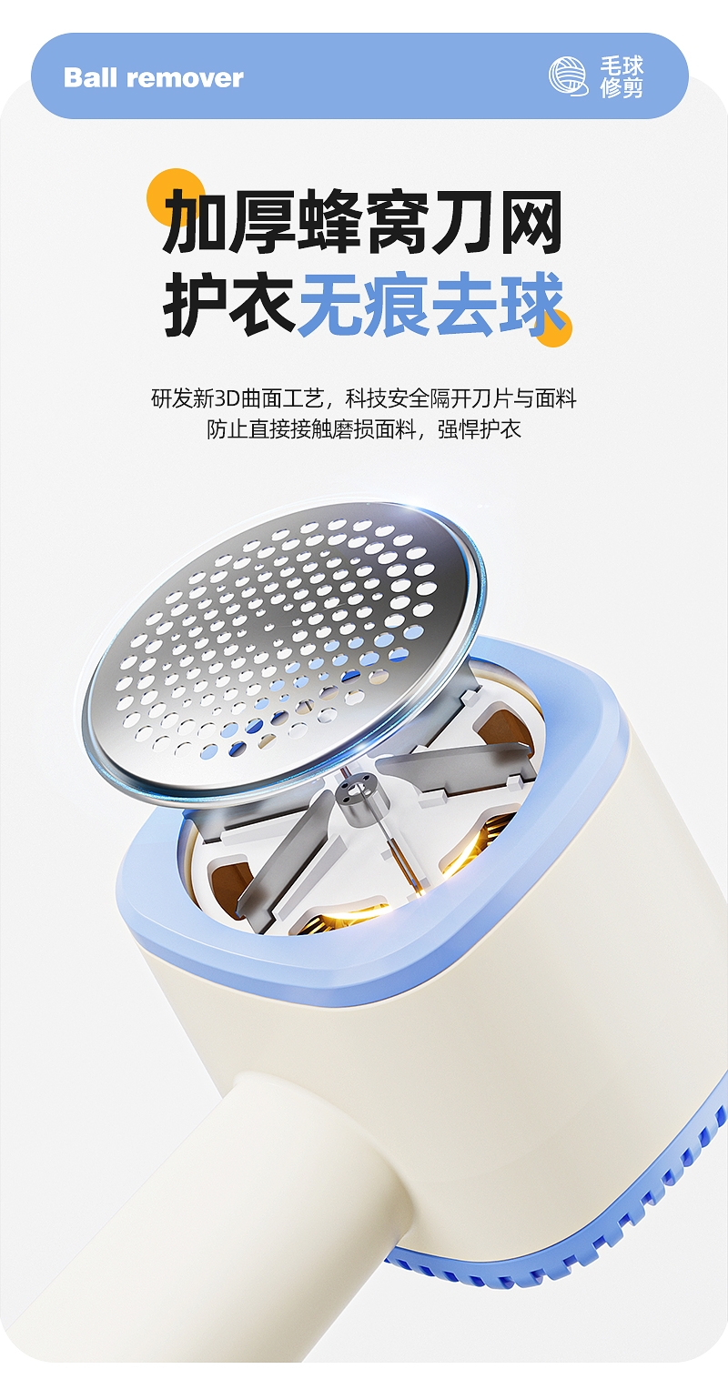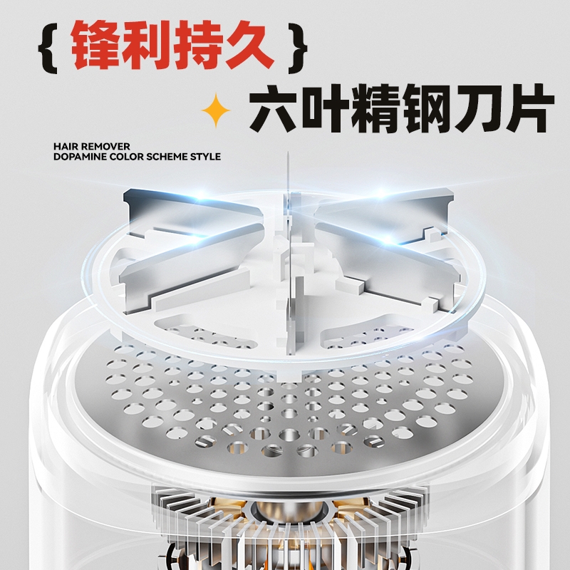 不锈钢六叶锋利刀片;强劲动力高效去毛球;高颜值去毛球好帮手