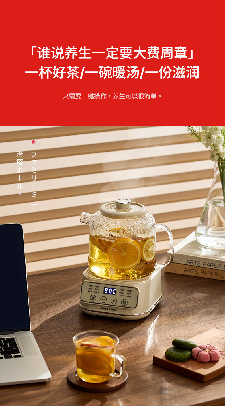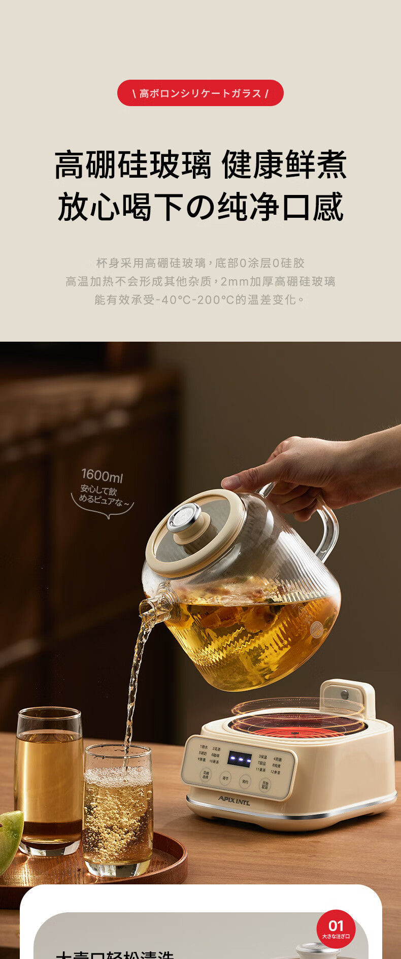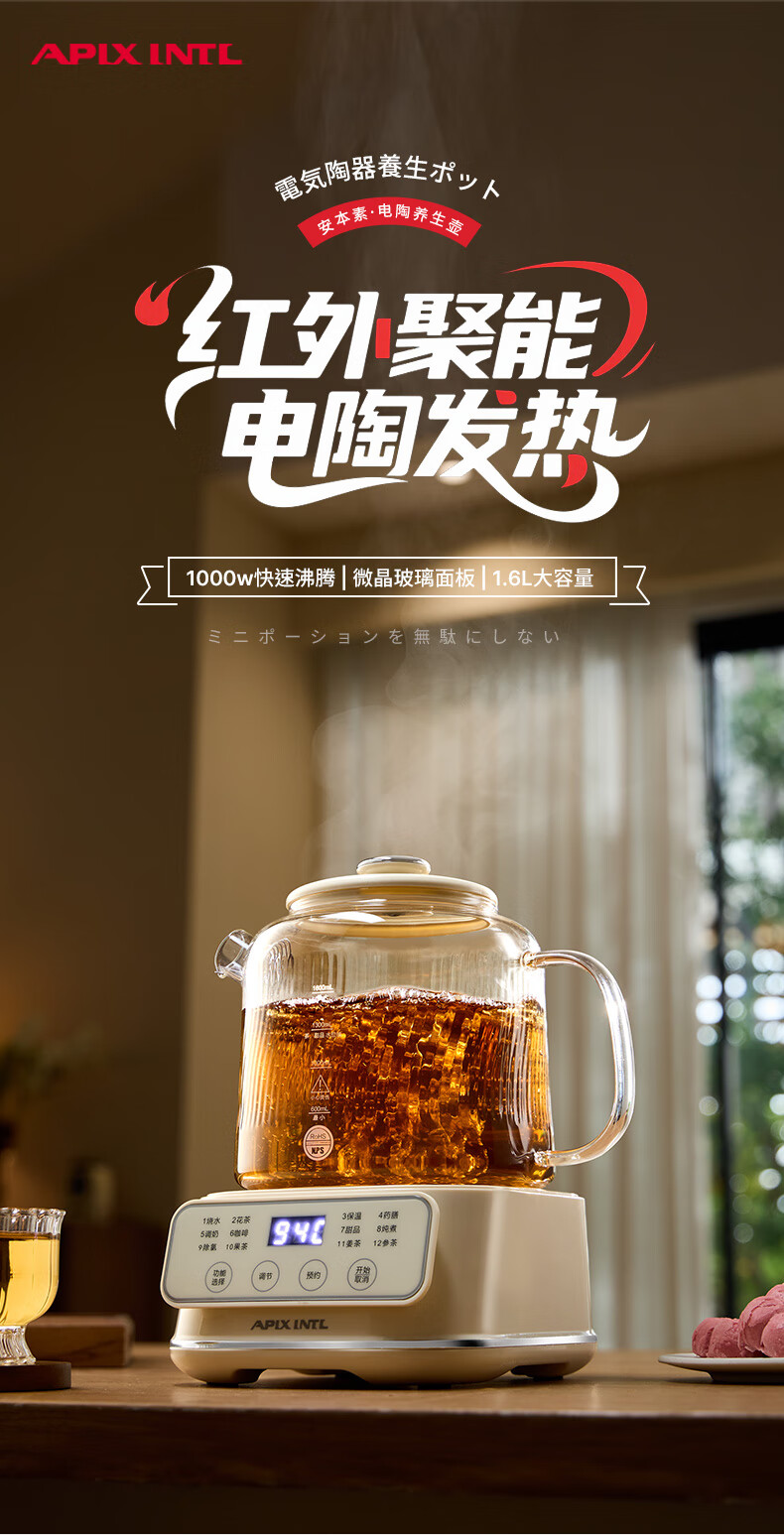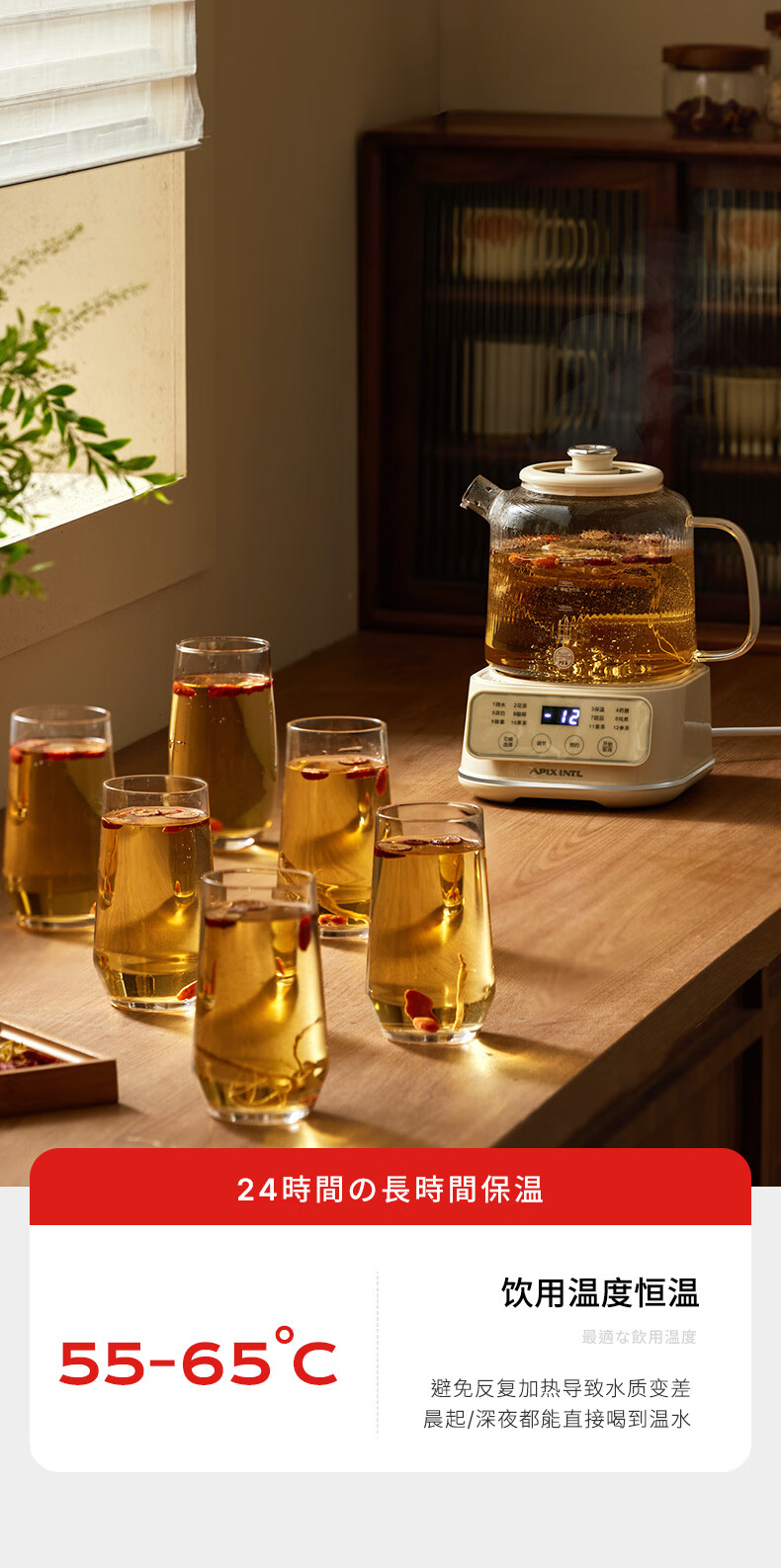 安本素 恒温养生壶全玻璃煮茶壶1.6LAPIX-EK10