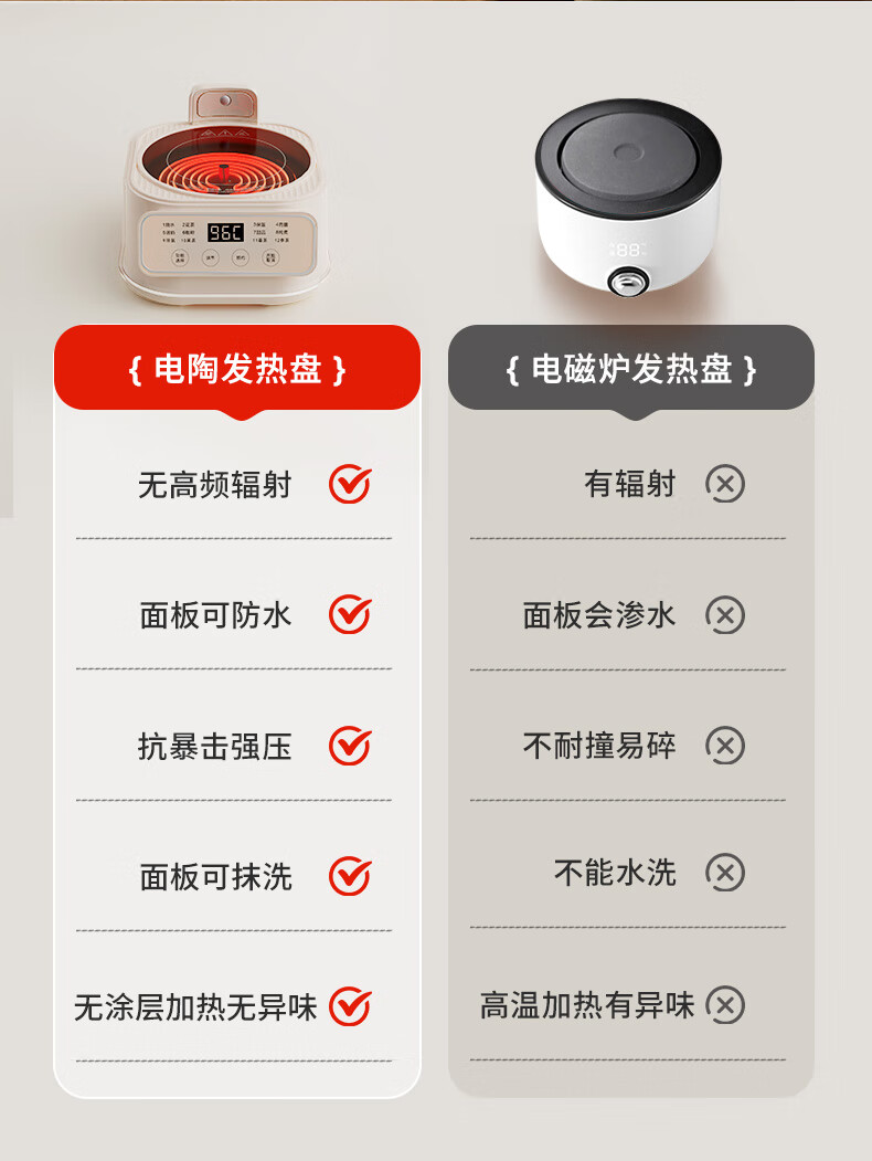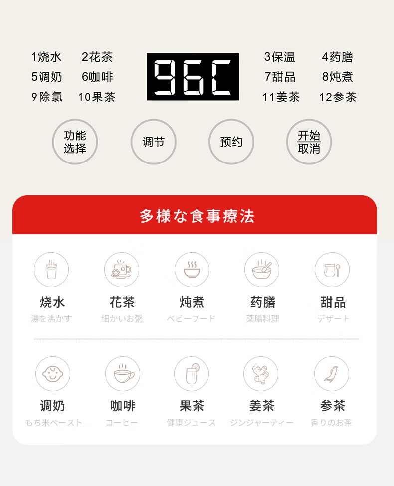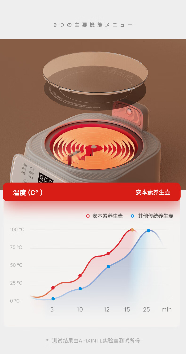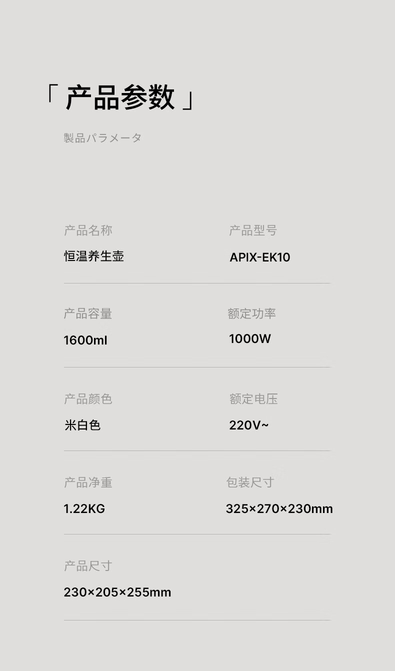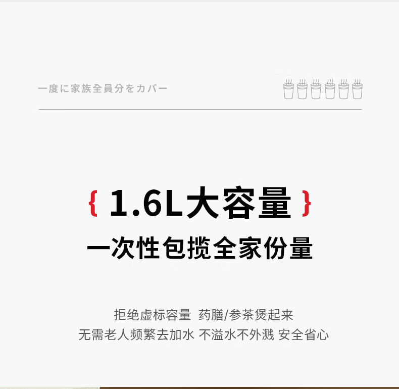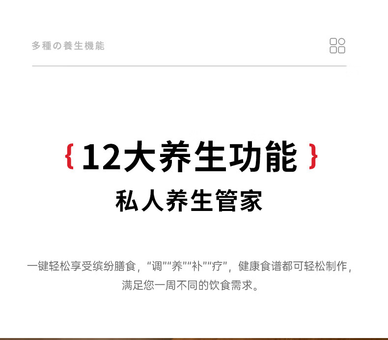 全玻璃机身,0硅胶0涂层;1000W大功率,15分钟快速沸腾;12大养生功能,可一键除氯