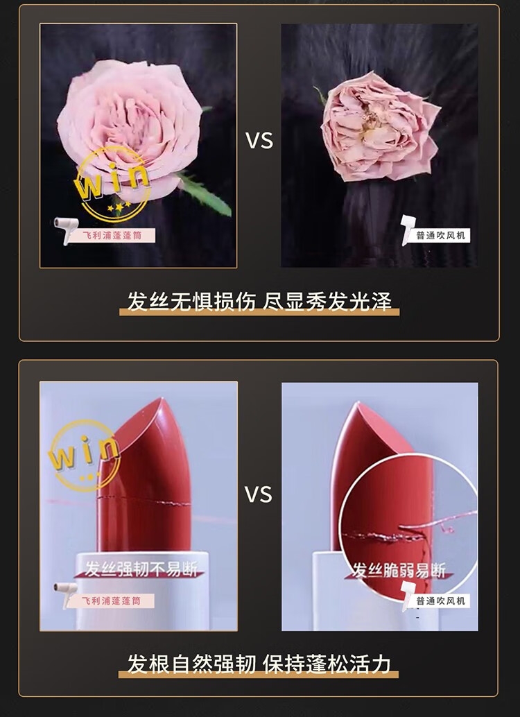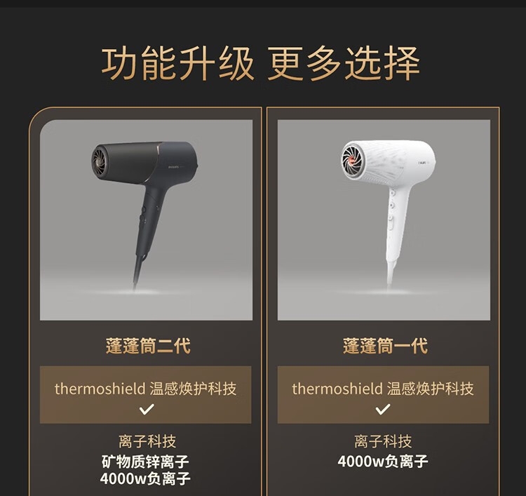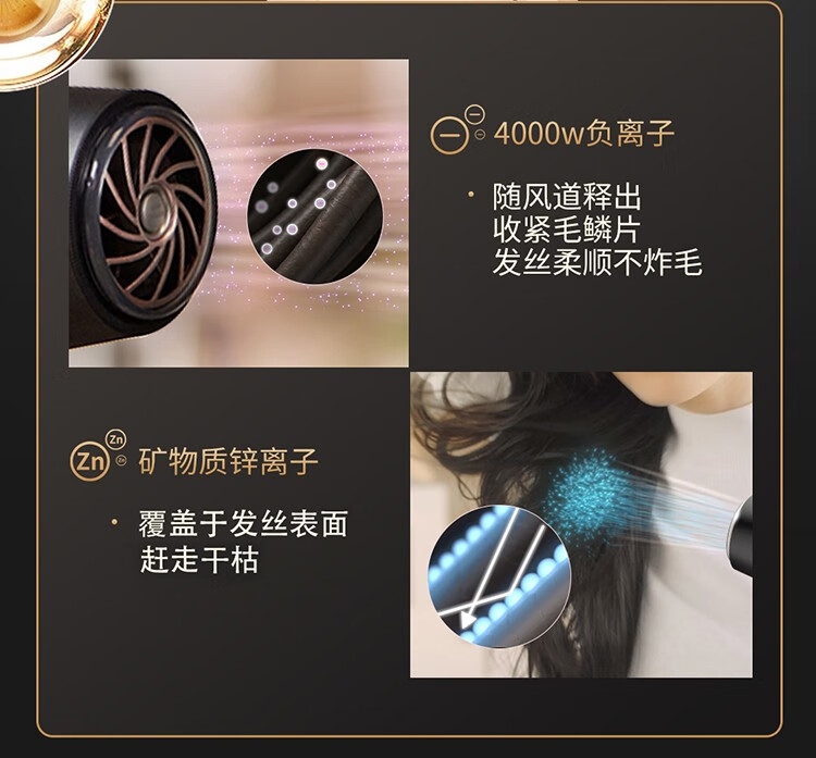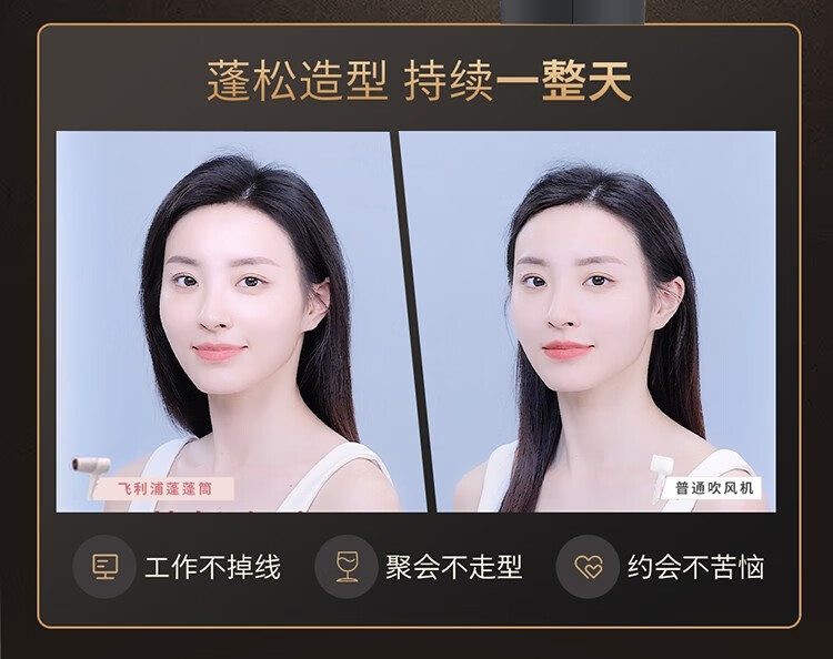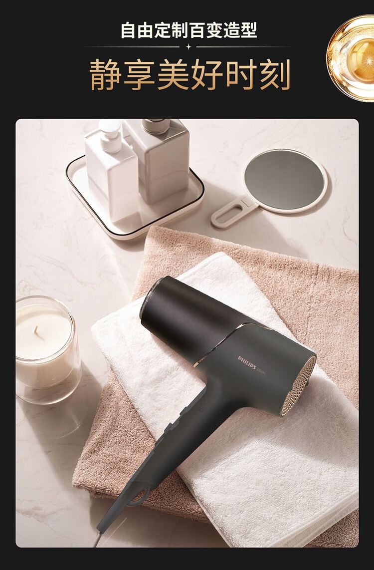 3分钟打造蓬松造型,在家吹出沙龙级高颅顶;30米/秒高风速,快速带走发丝中水分;55-65°C 波段式持续调温,不伤头皮