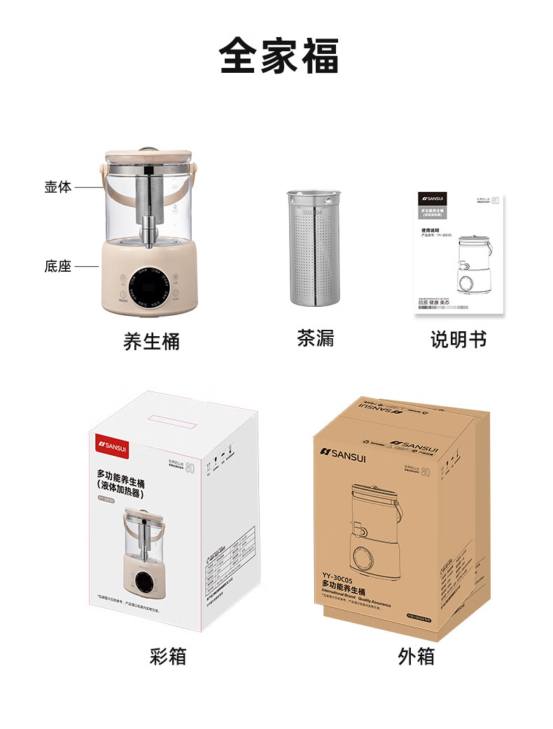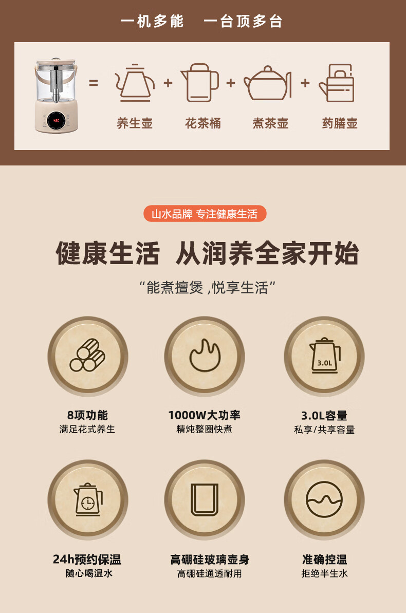 山水 多功能养生壶煮茶器花茶壶3LCD-E30
