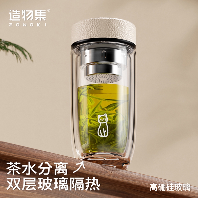 双层高硼硅玻璃杯身,杯体轻盈透亮,防爆耐腐蚀;食品级不锈钢茶隔,精细过滤;圆润光滑杯口