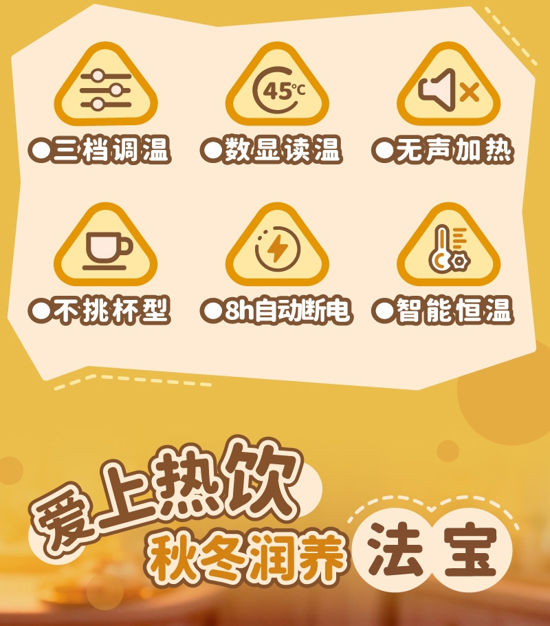 加热无声,安静速热不打扰;三档调节,智能数显;8小时自动断电