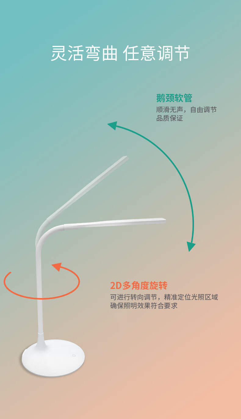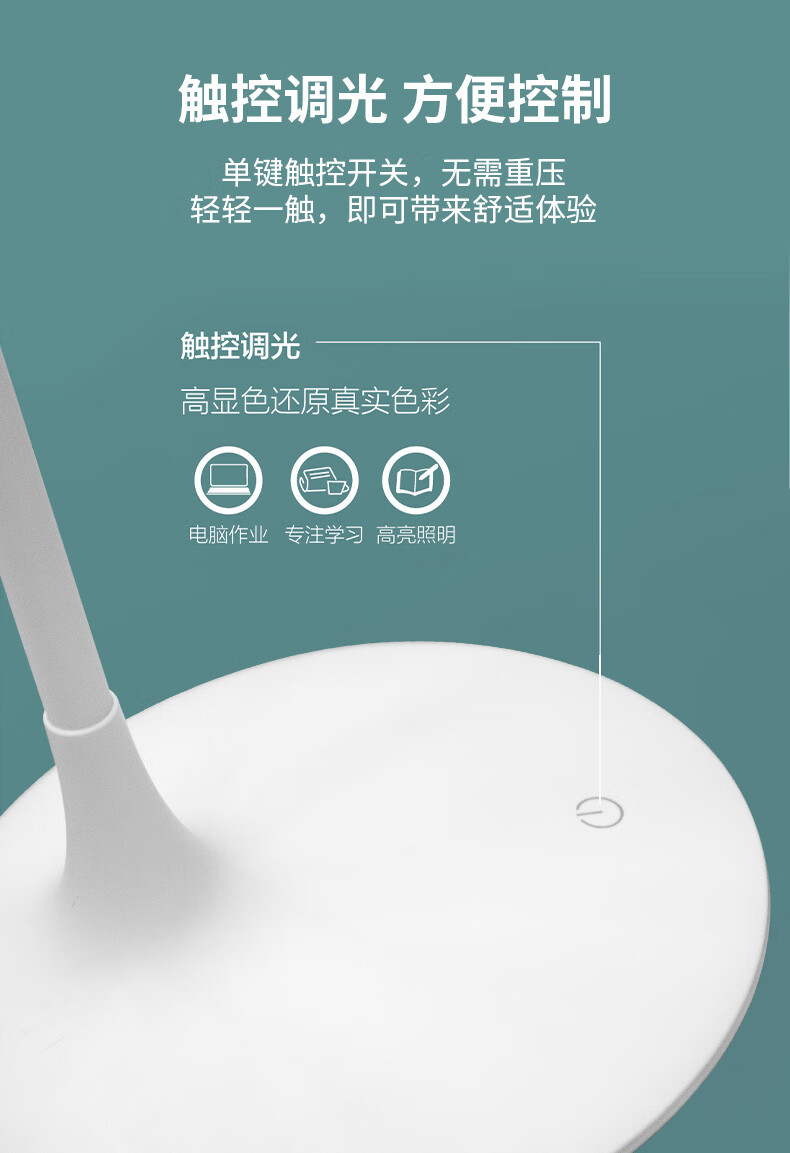 一键智能触控式开关;均匀光照效果 远离眼睛酸涩;采用180°方向轴,经过反复测试,体验流畅的转轴设