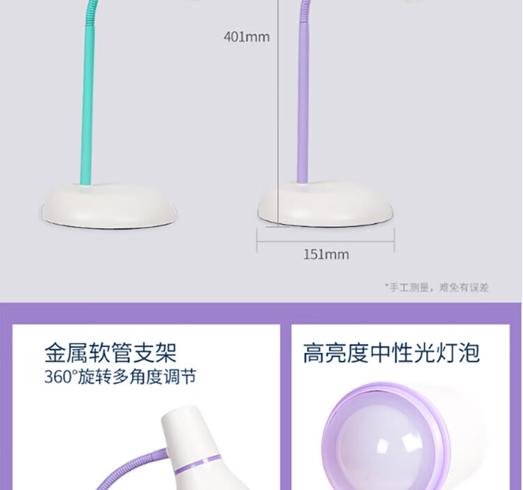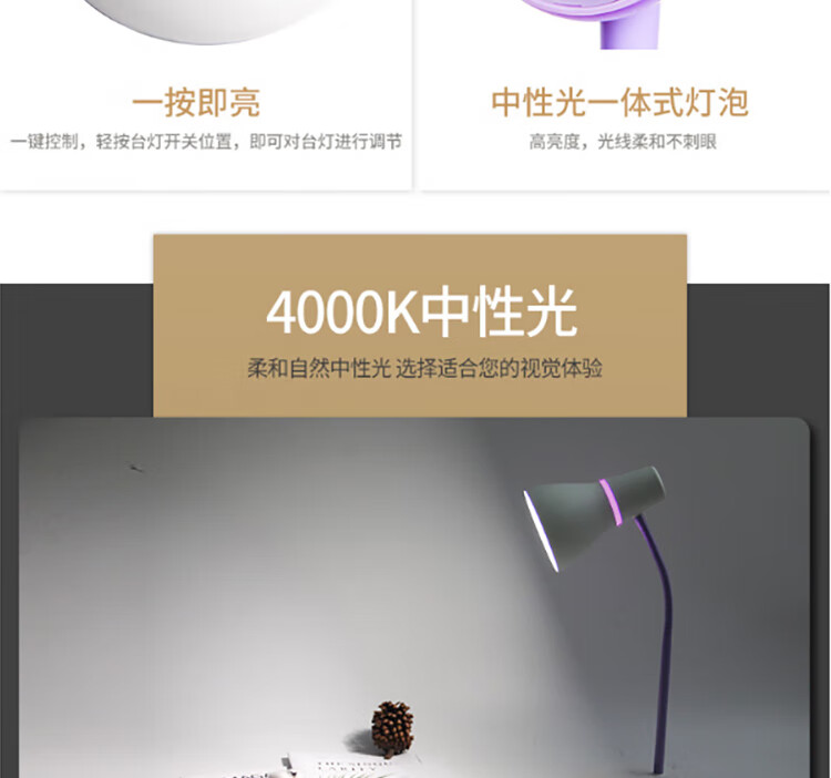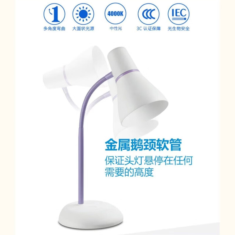 金属鹅颈软管 灵活弯曲;4000K舒适中性光;两色可选