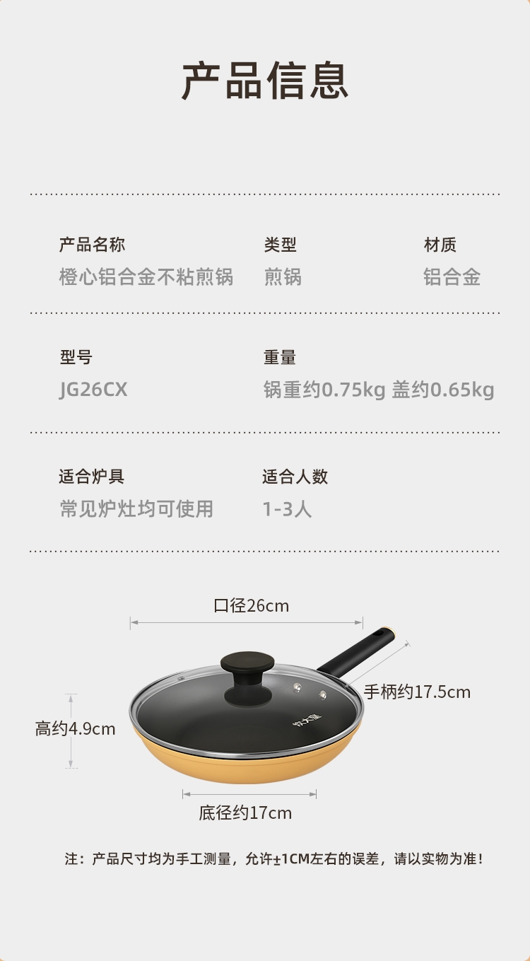 炊大皇 橙心铝合金不粘锅煎锅26cmJG26CX