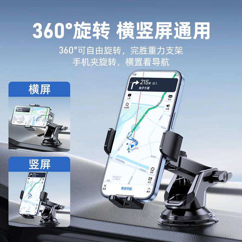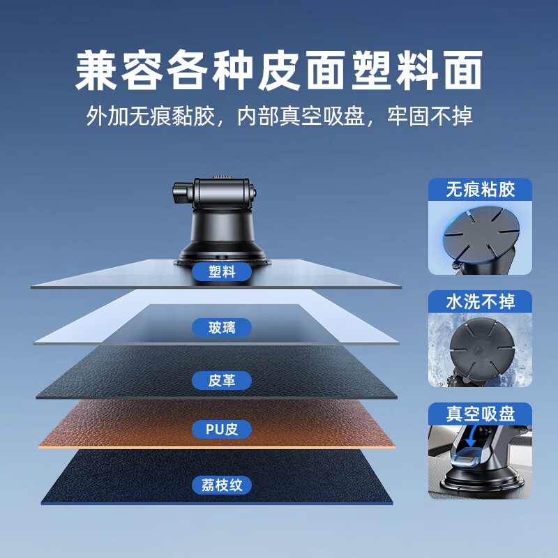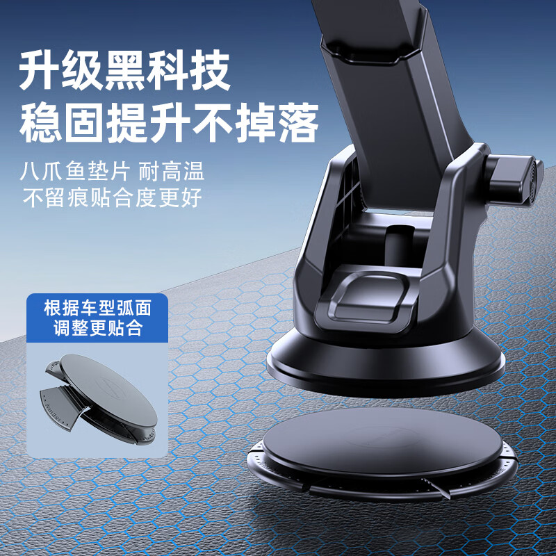 万能车载中控台支架,带八爪鱼垫片;防滑加厚粘胶垫,防水可重复使用;360度旋转,可自由伸缩架
