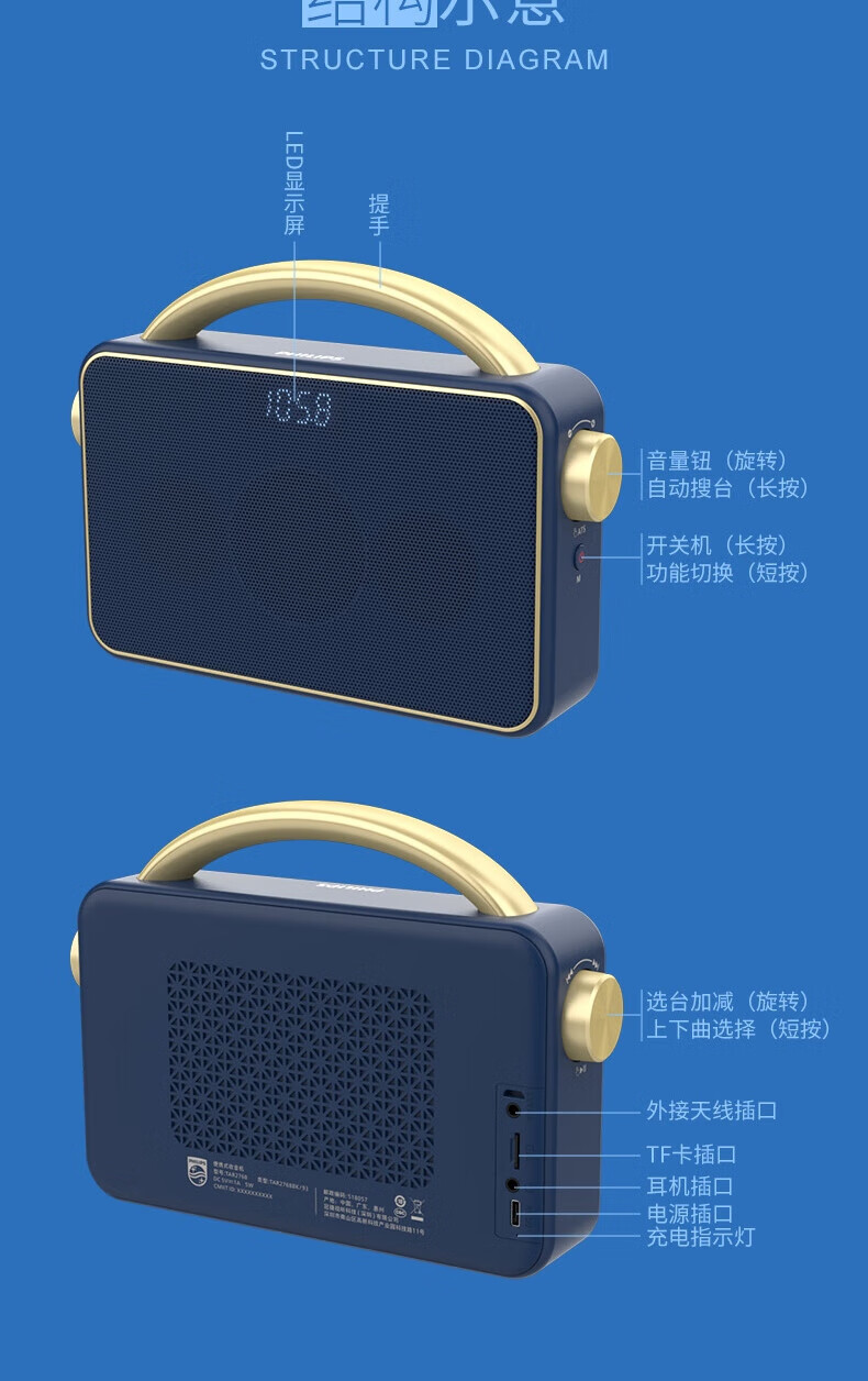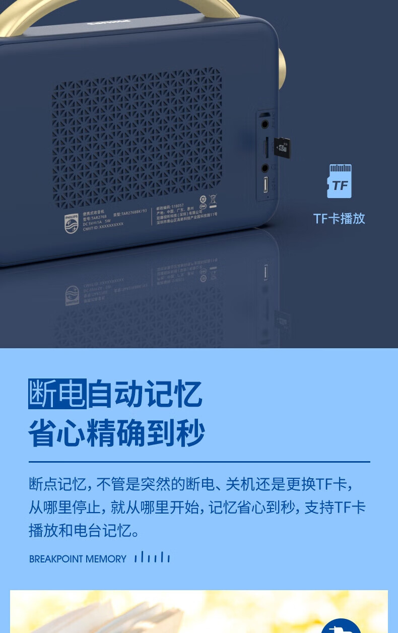 飞利浦 便携蓝牙音箱户外音响TAR2768