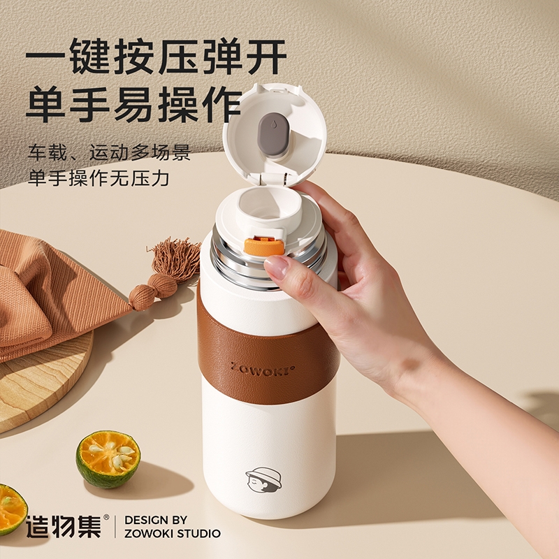 一键弹开式杯盖,操作简单方便;杯盖一体滤网,茶水分离;一盖两用,是盖子也是杯子