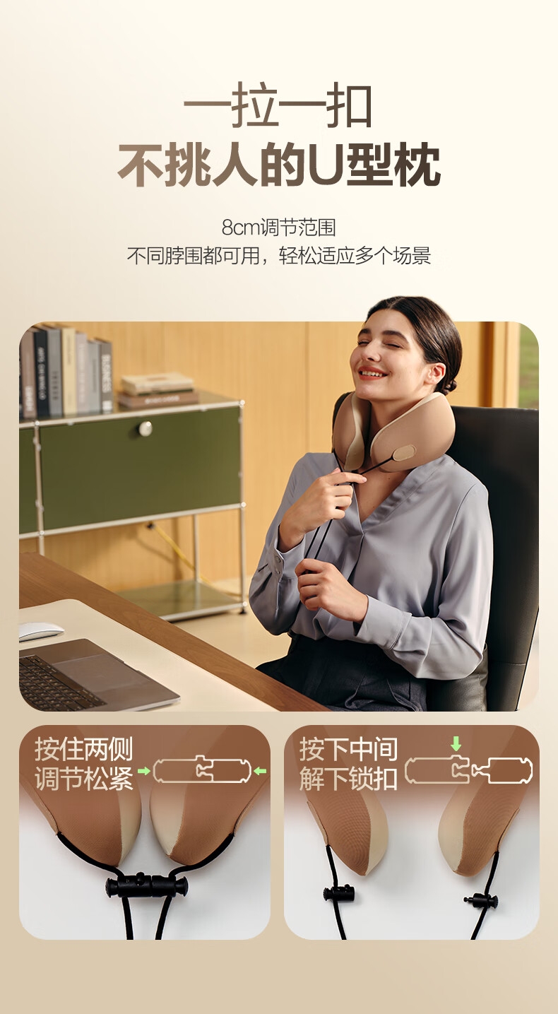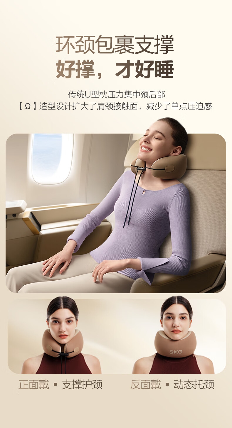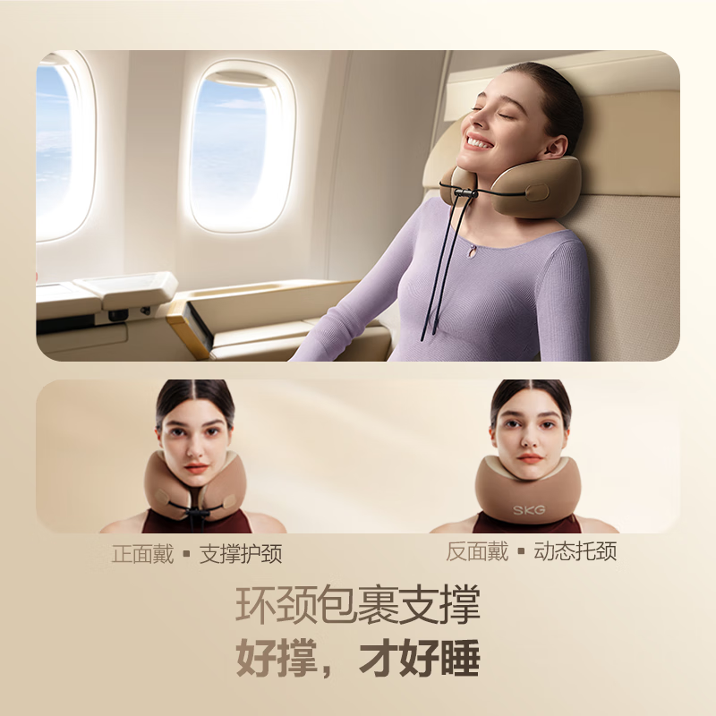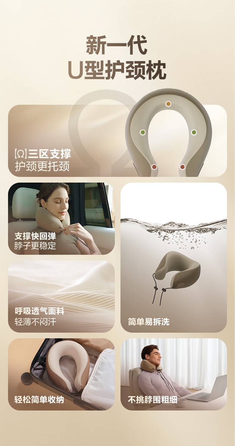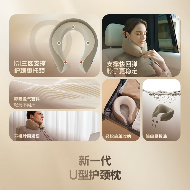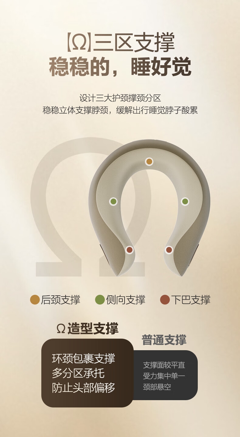 3D环绕支撑系统:三点托扶;正反两用+10秒拆洗;智能松紧颈圈