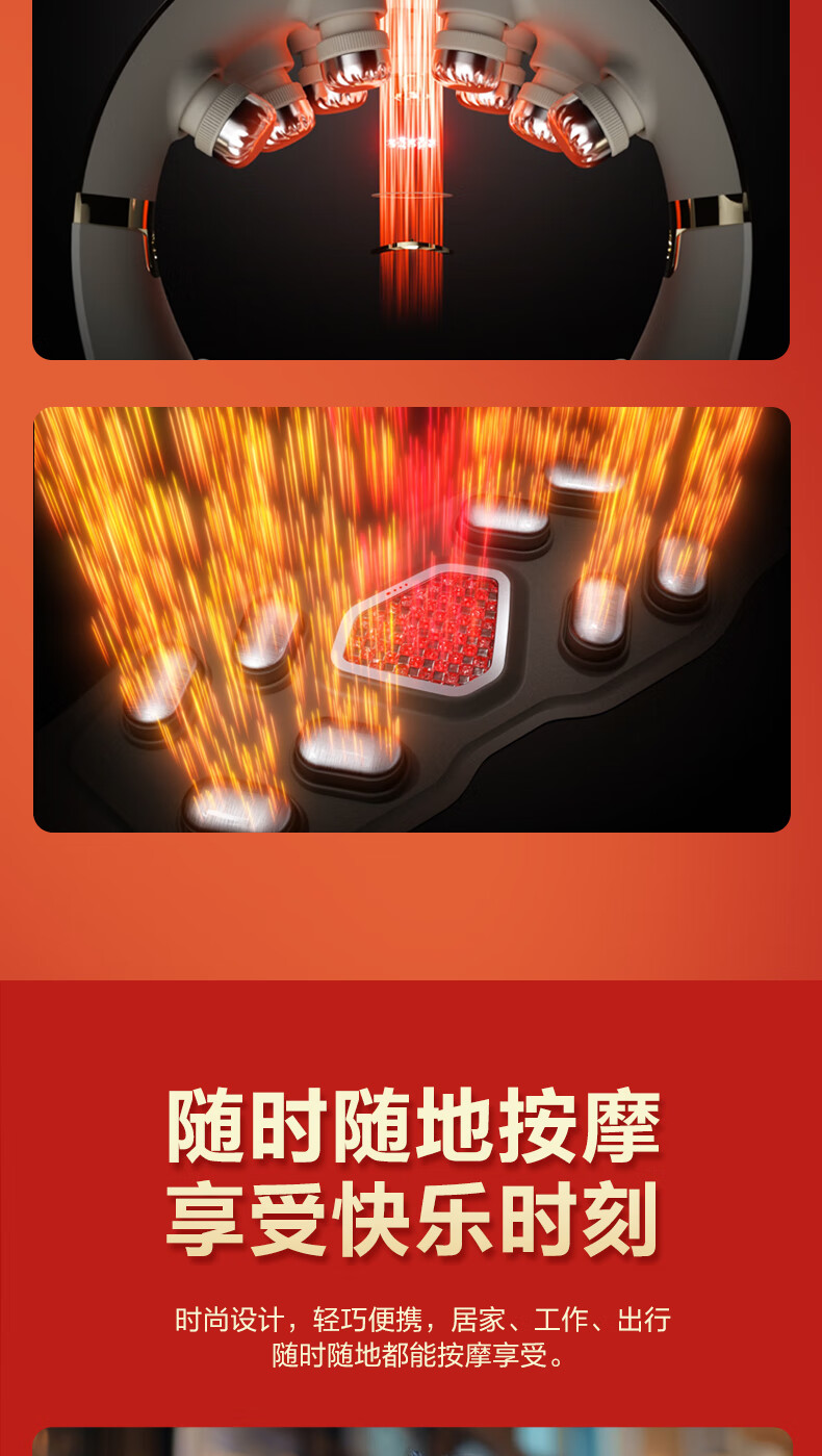 同频共振效果,百种按摩体验;升级nano按摩头-震感更强;红光-7颗聚能红光灯珠