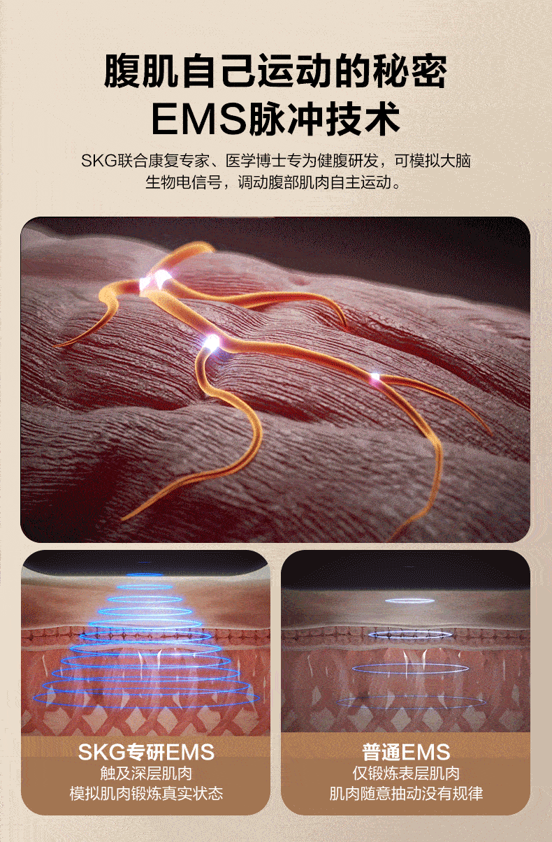 6分区大面积健腹;4种健腹模式;360°立体束腰设计