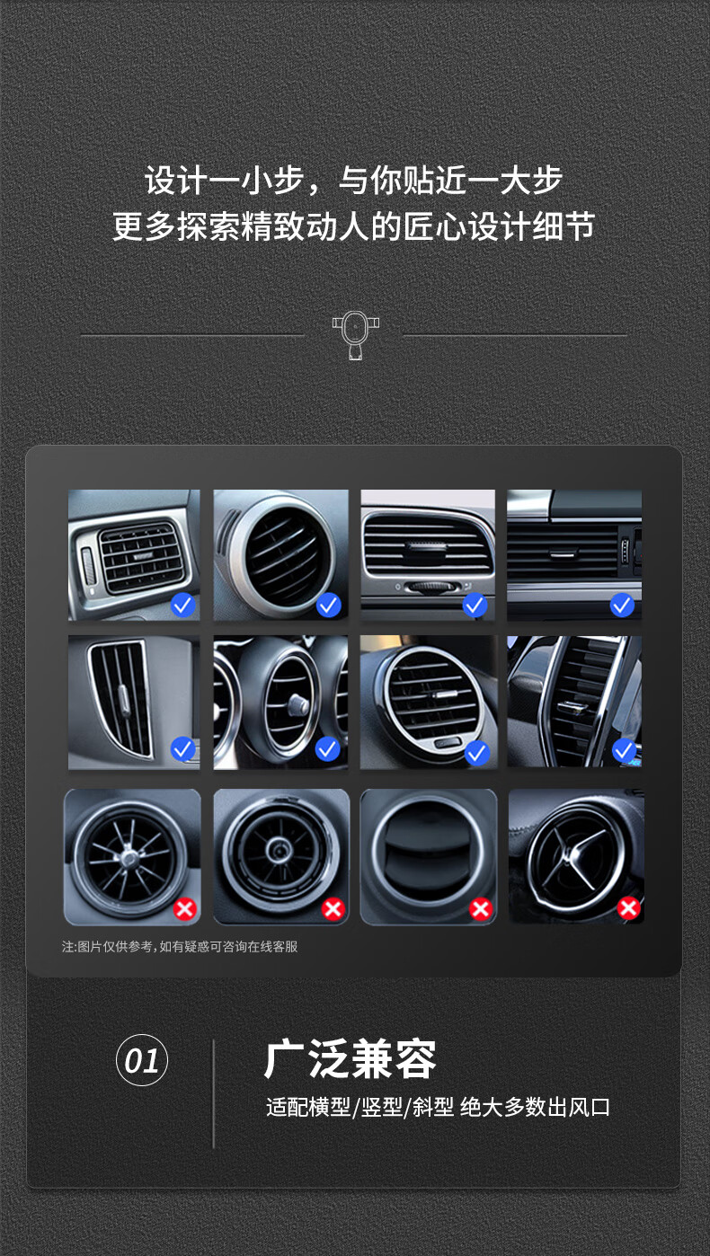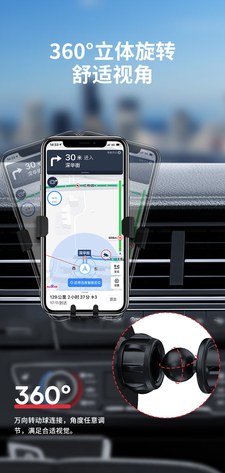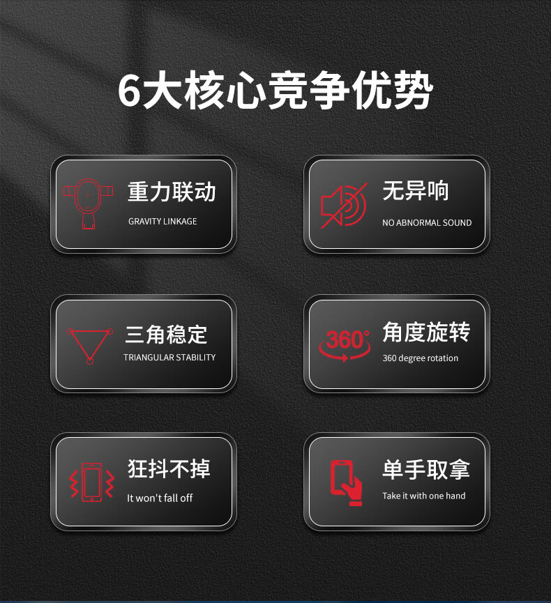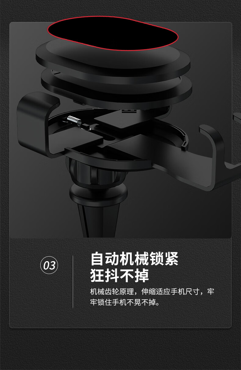 机械齿轮原理,伸缩适应手机尺寸,牢牢锁住手机不晃;升级加长钢芯插头,加厚硅胶垫,稳固防滑不伤车;三角支撑原理+齿轮结构,多方位定点环绕锁定重心不晃