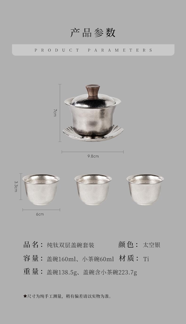 颜色:纯钛三才盖碗160ML配3个纯钛小茶杯