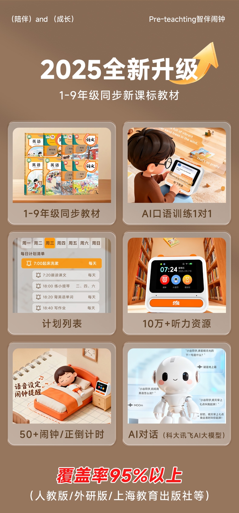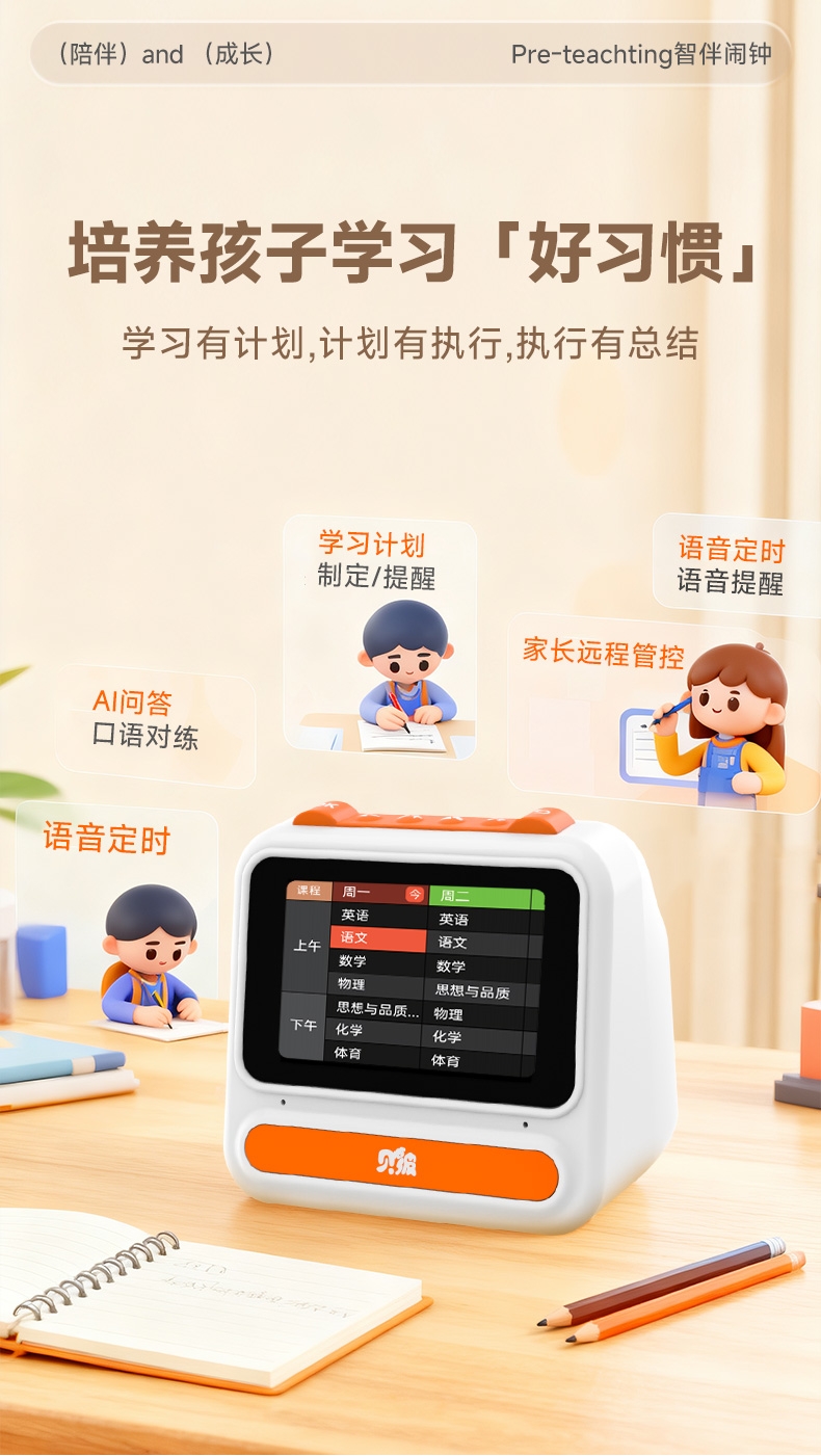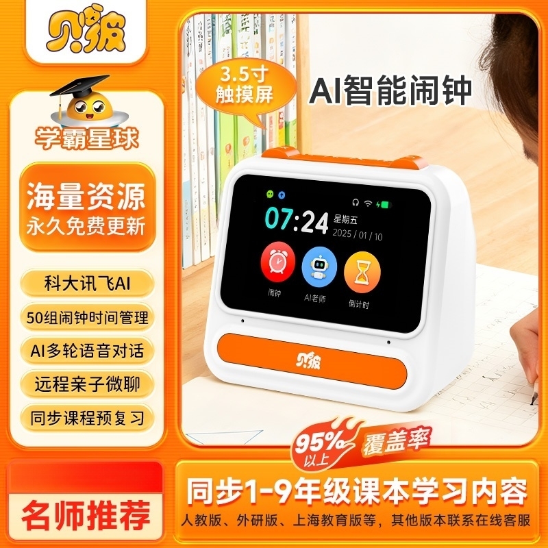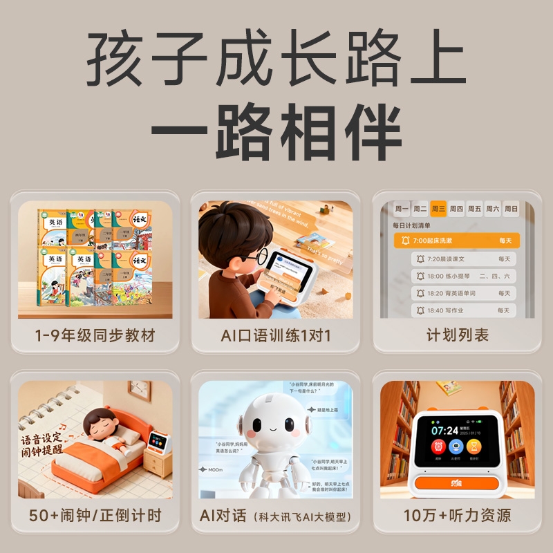 科大讯飞AI智能大模型,全语音控制 ;智能番茄钟、倒计时钟,秒表、50组闹钟;100万+海量正版免费内容,3-12岁学霸星球