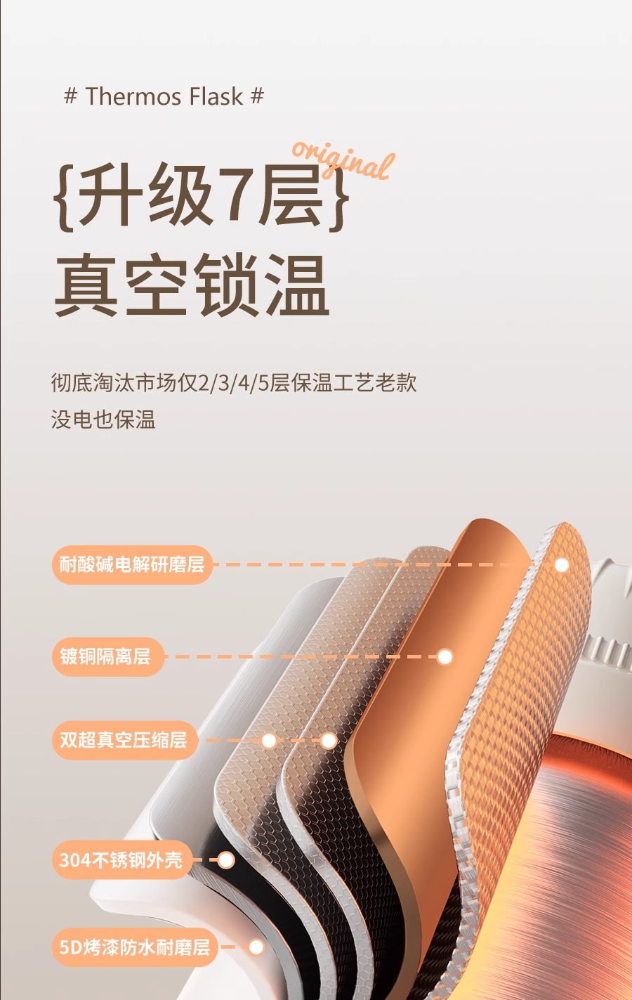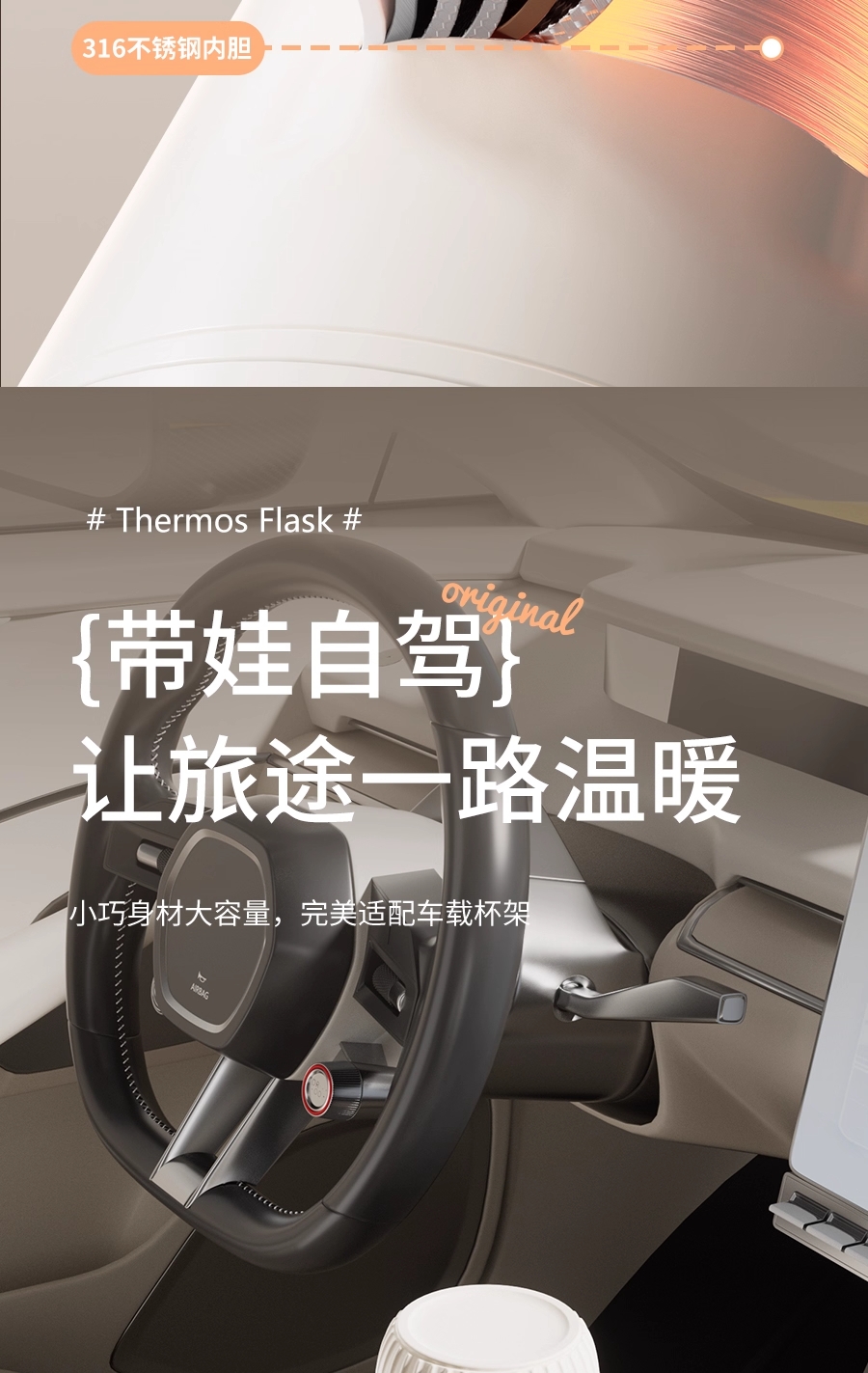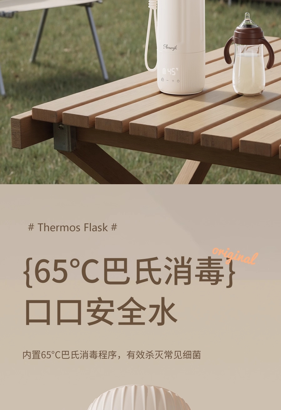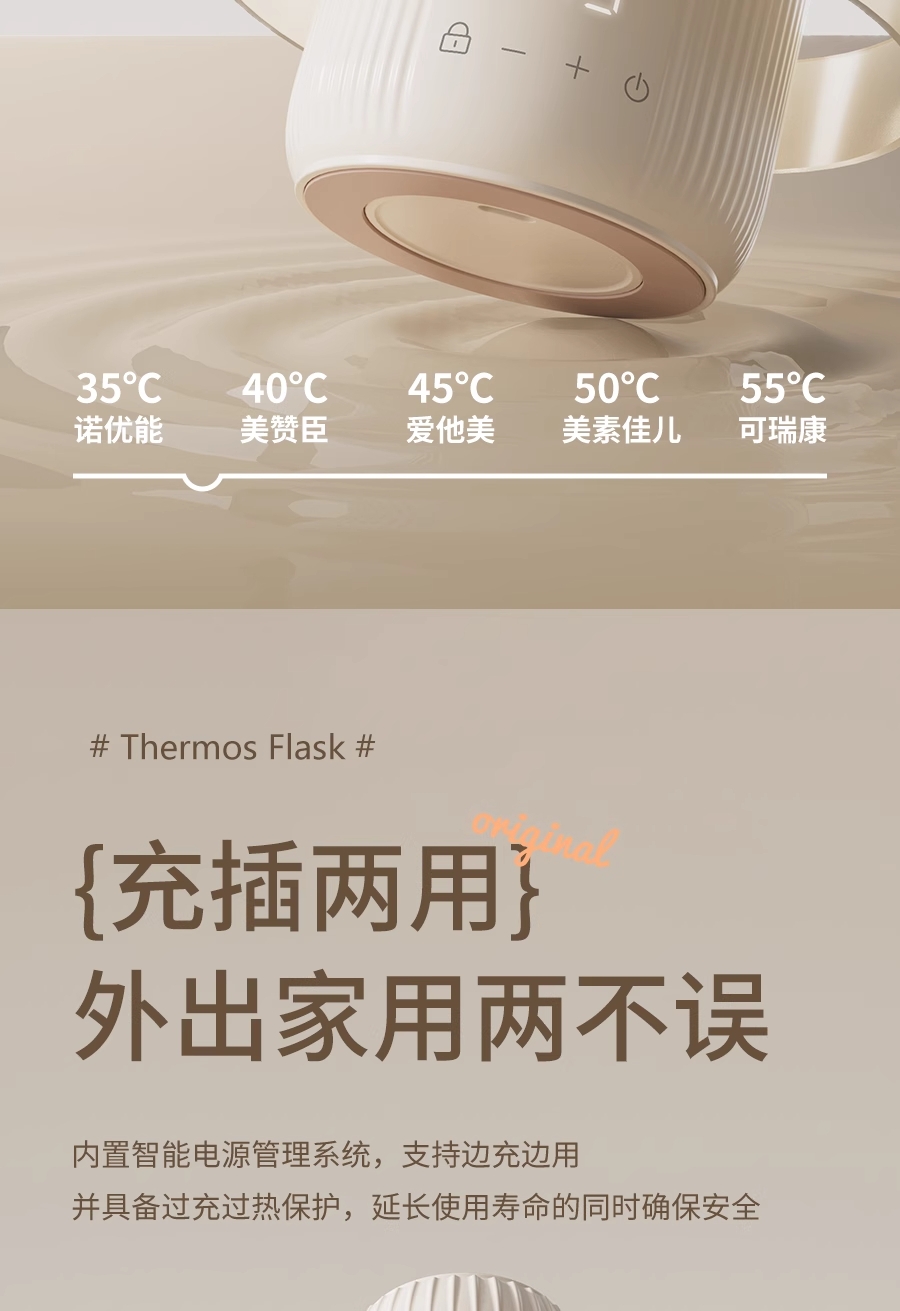 精准控温,316L不锈钢内胆,65℃巴氏消毒;2MIN速热,35-100℃自由调,充插两用;7层真空锁温,48H恒温,500ml大容量