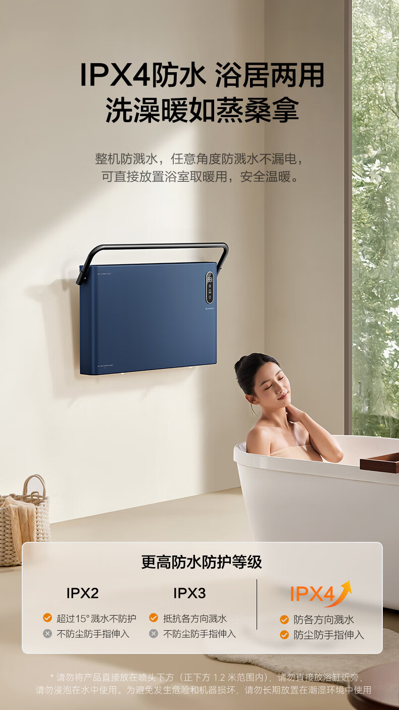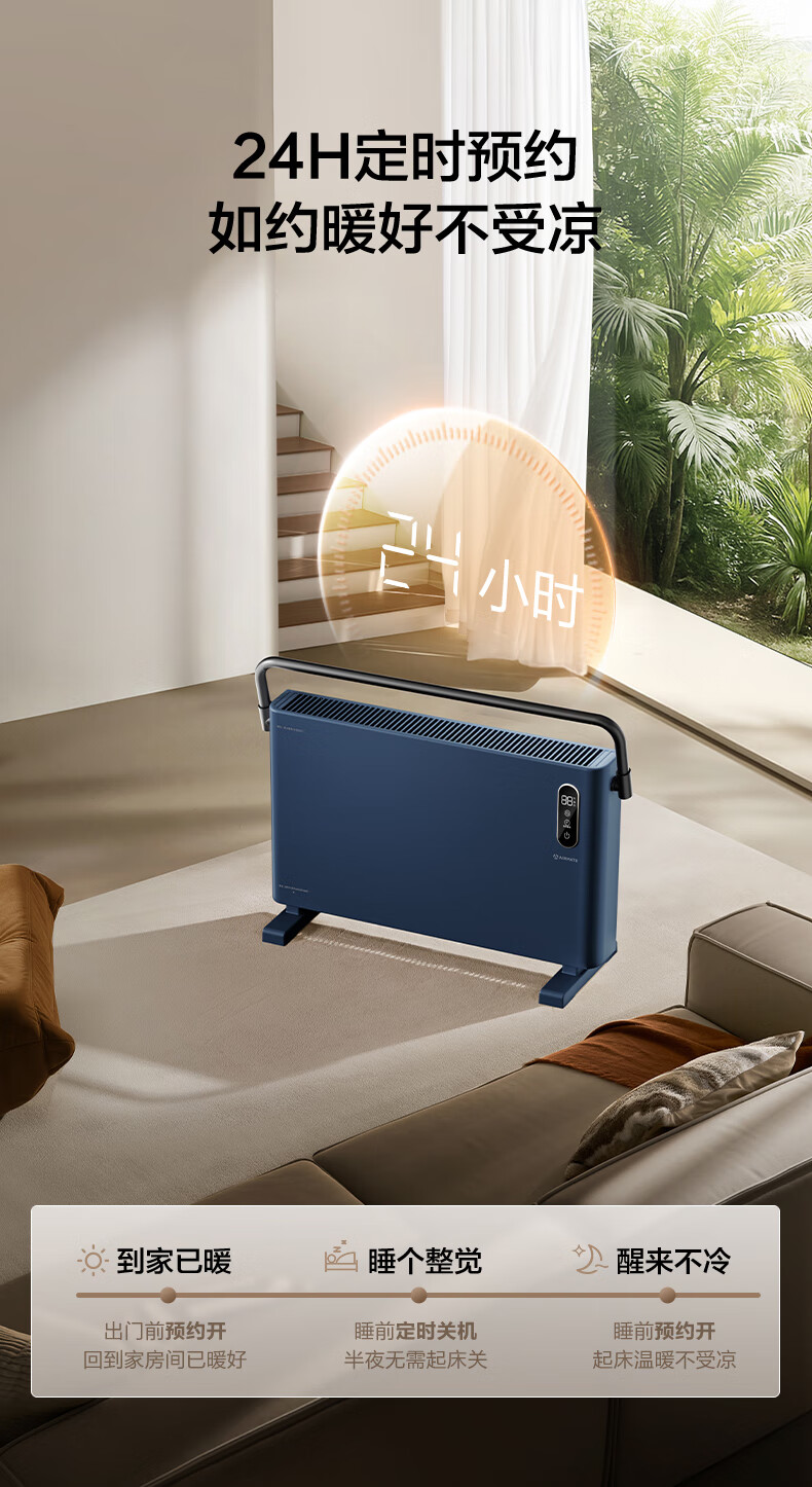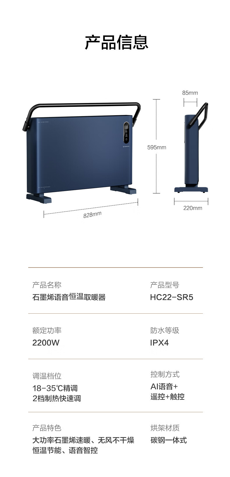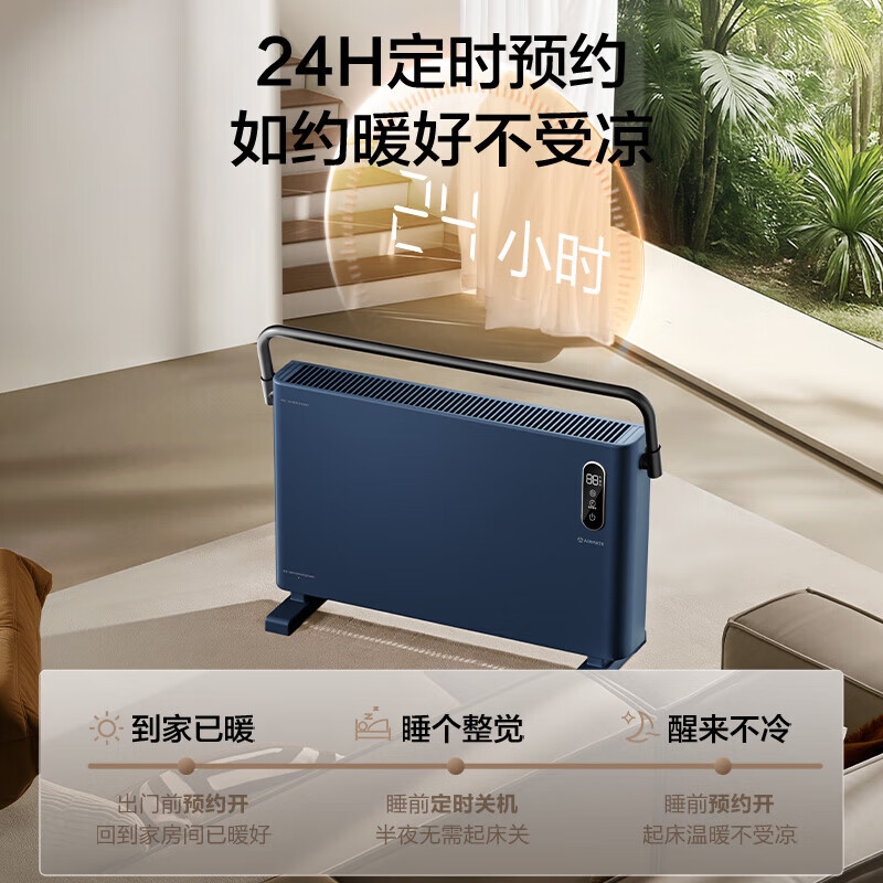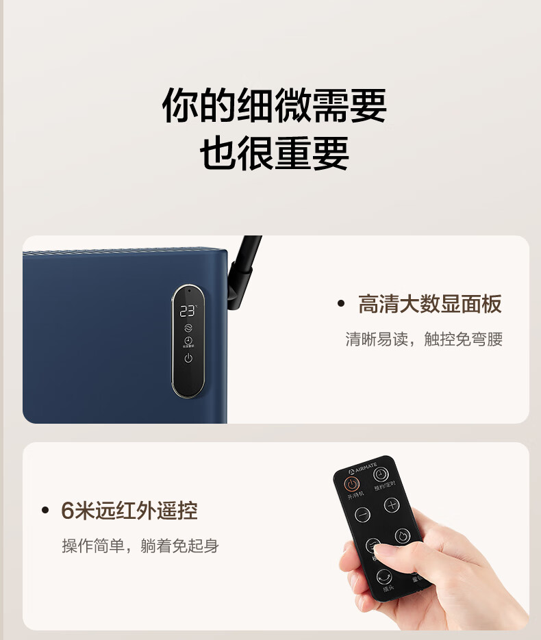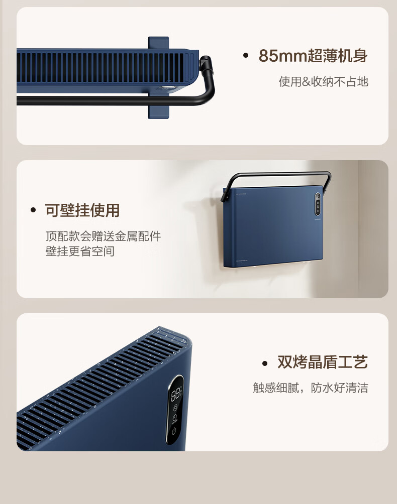 AI智能温控整屋18-35℃恒温坐亨黄金夏日感;仿生睡眠模式暖如海浪起伏;87处圆润化处理 整机0尖角育婴级温柔呵护;加粗碳钢烘衣架暖衣烘衣,挂满不弯塌;省电ECO模式暖气界的“变频”技术更低能耗更省电
