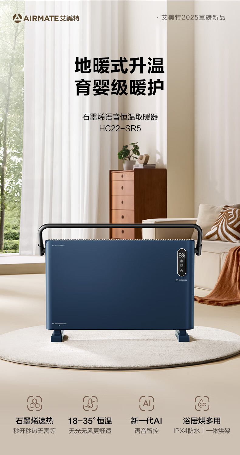 艾美特 语音遥控电暖气石墨烯取暖器HC22-SR5