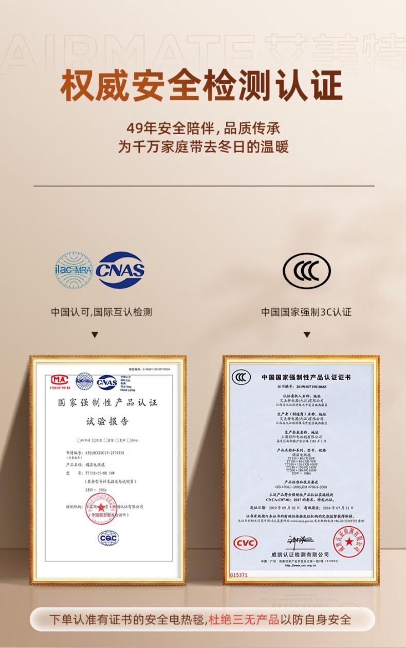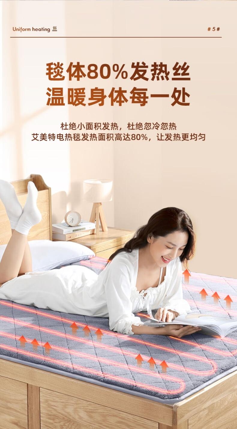 艾美特 除螨除潮定时分区控温电热毯TTEC02-07