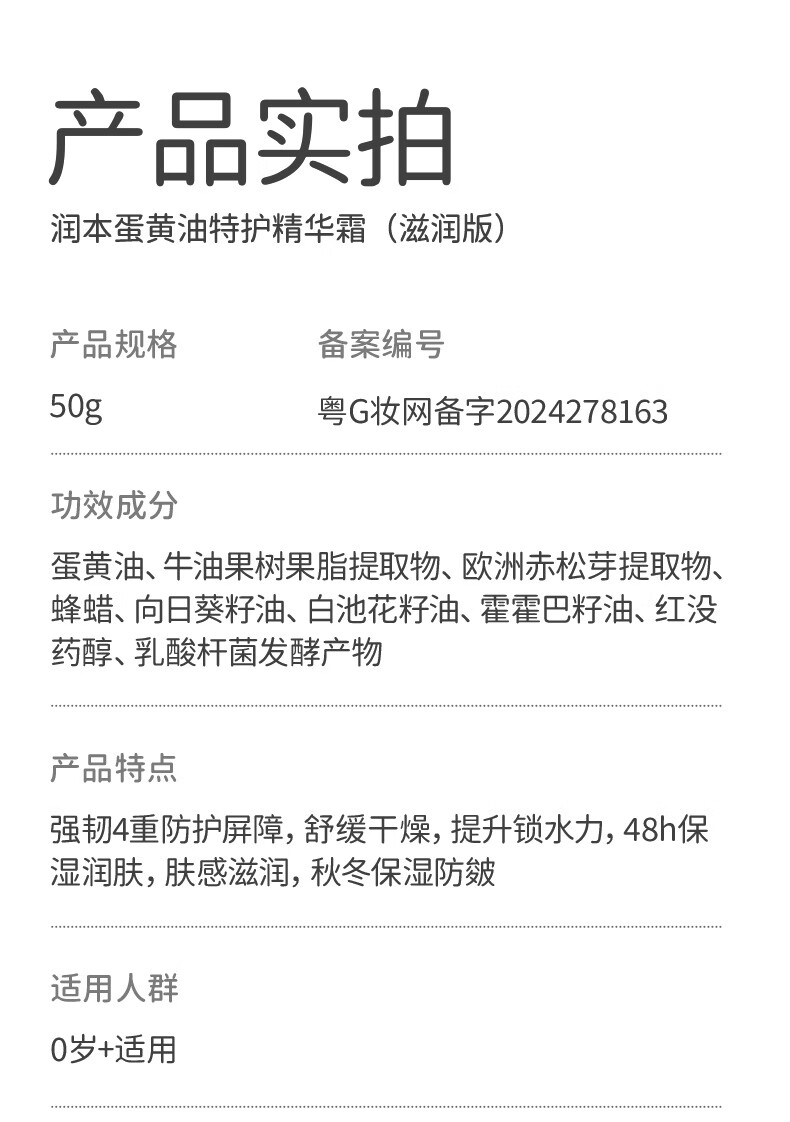 配置清单:润本蛋黄油霜50g+蛋黄油乳100ml