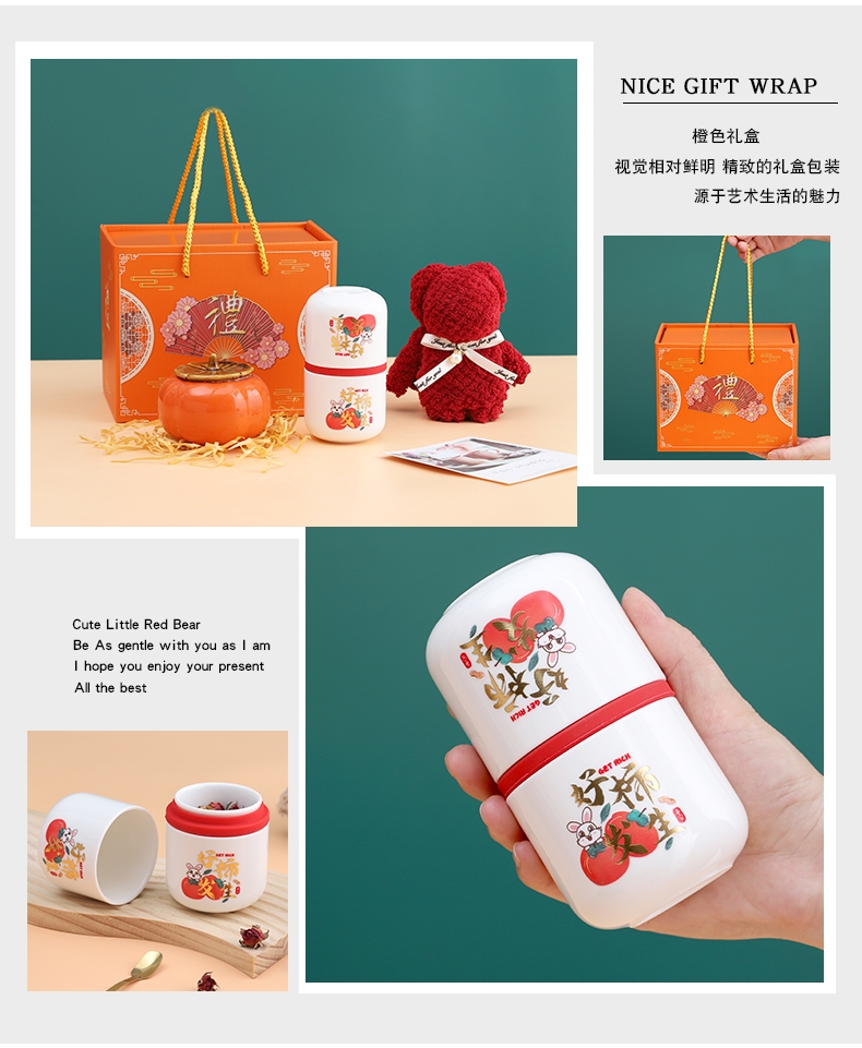配置:同心茶隔水杯+杮子罐+毛巾小熊伴手礼