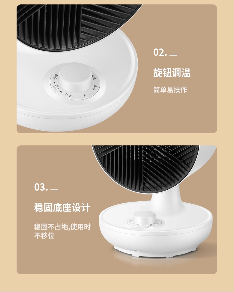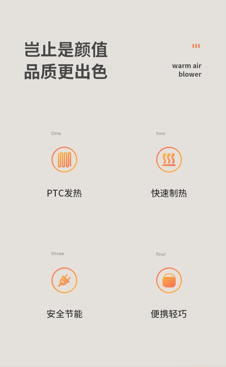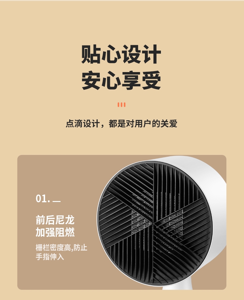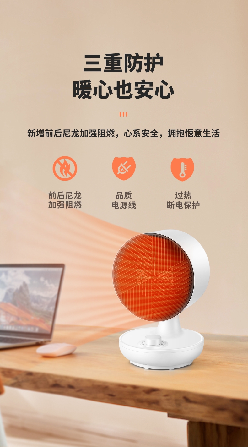 冷暖两用伴你春夏到秋冬;三重防护暖心也安心;PTC发热体安全发热