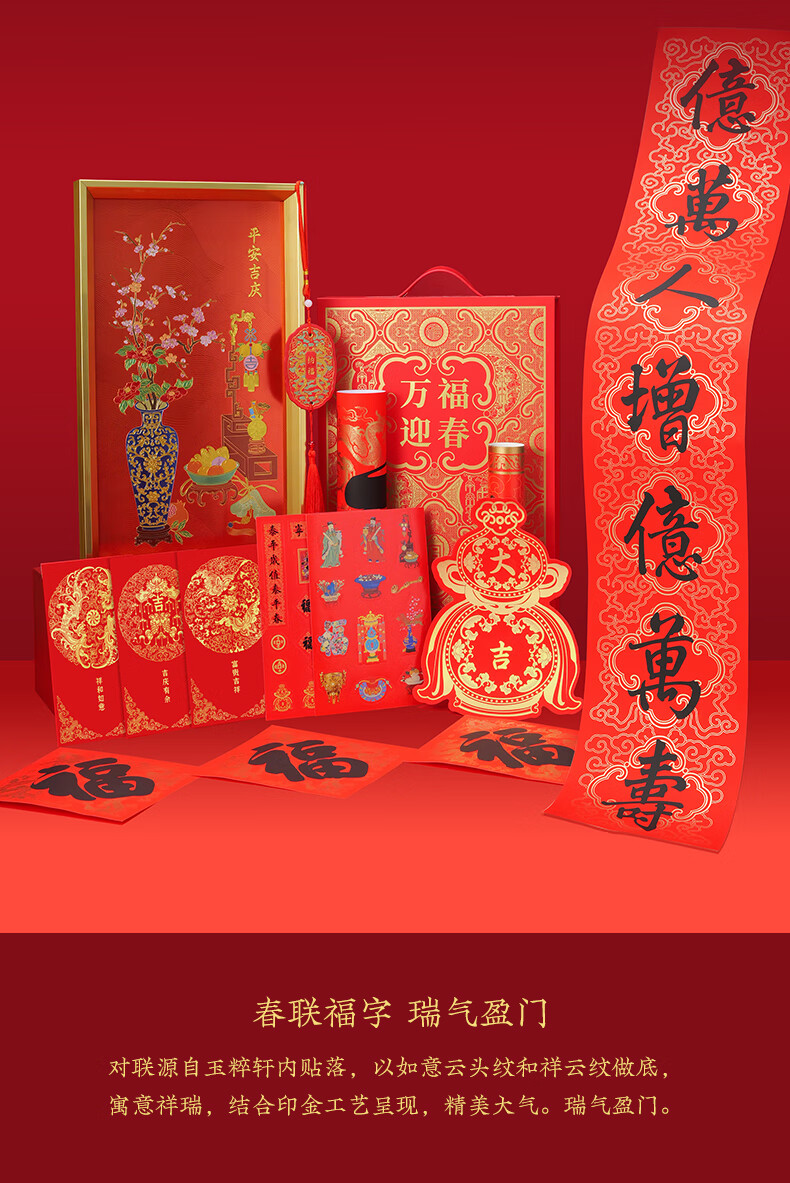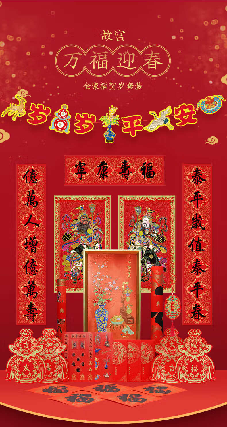 故宫文化 万福迎春全家福贺岁套装春节对联