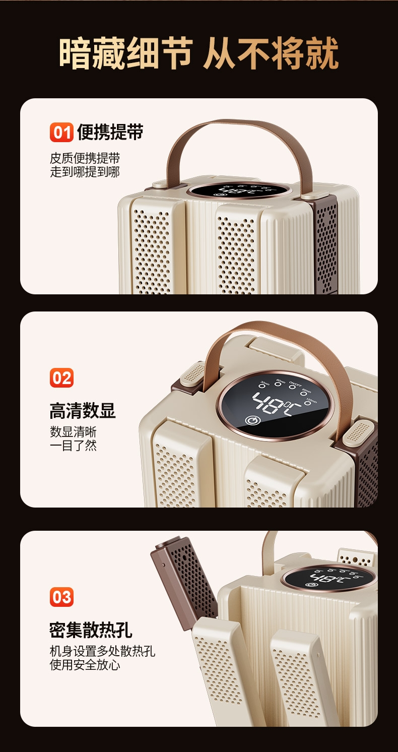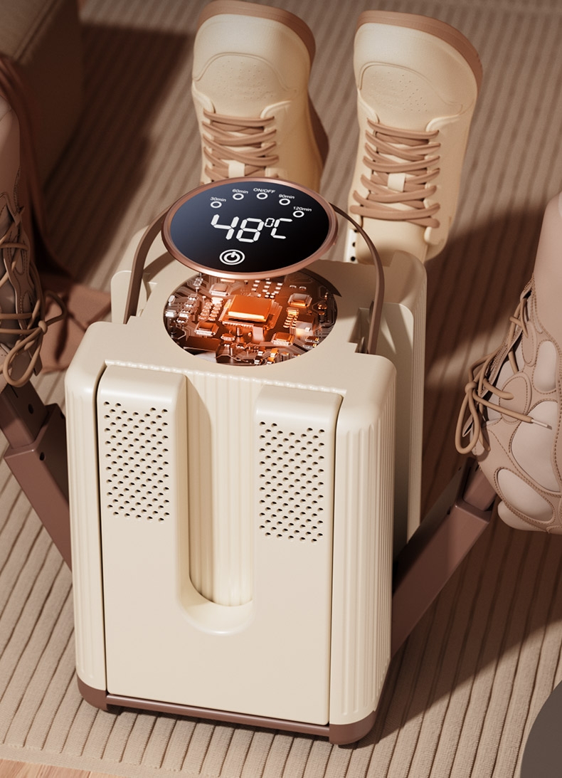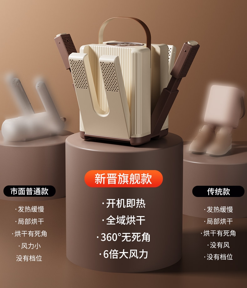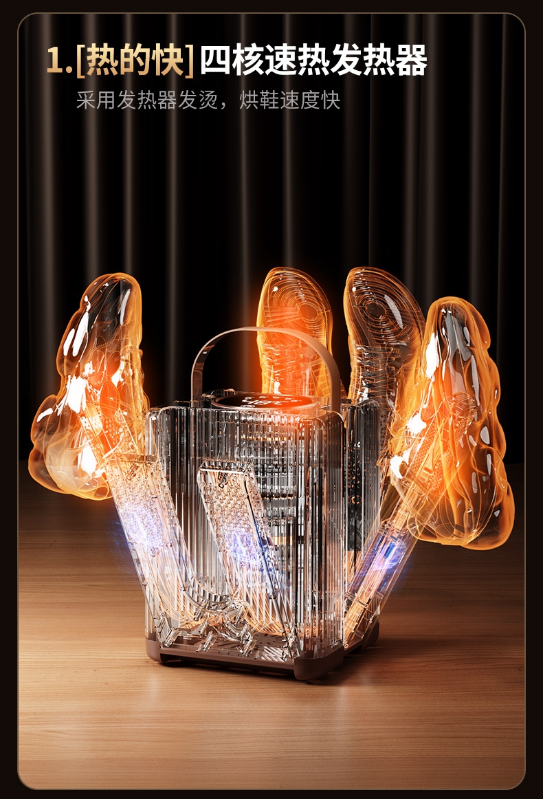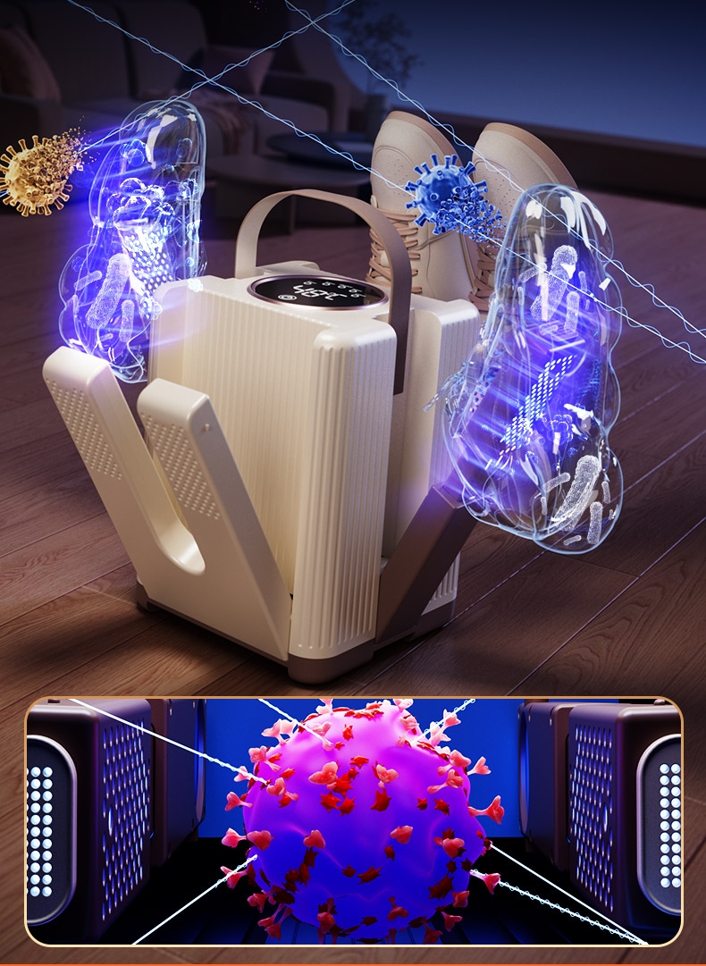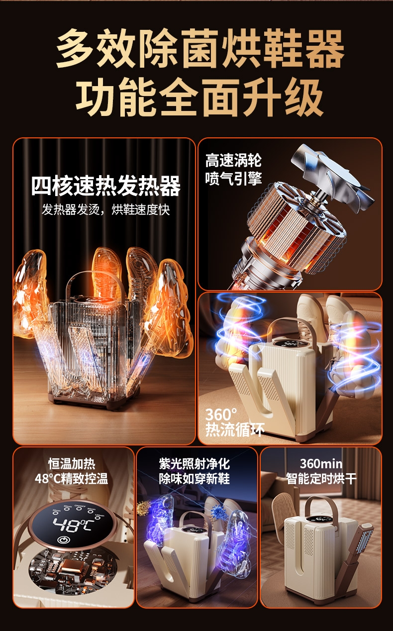 UV蓝光紫外线杀菌120min定时烘鞋;恒温烘干同时可烘干六双鞋子;数显操控屏折叠收纳不占地方