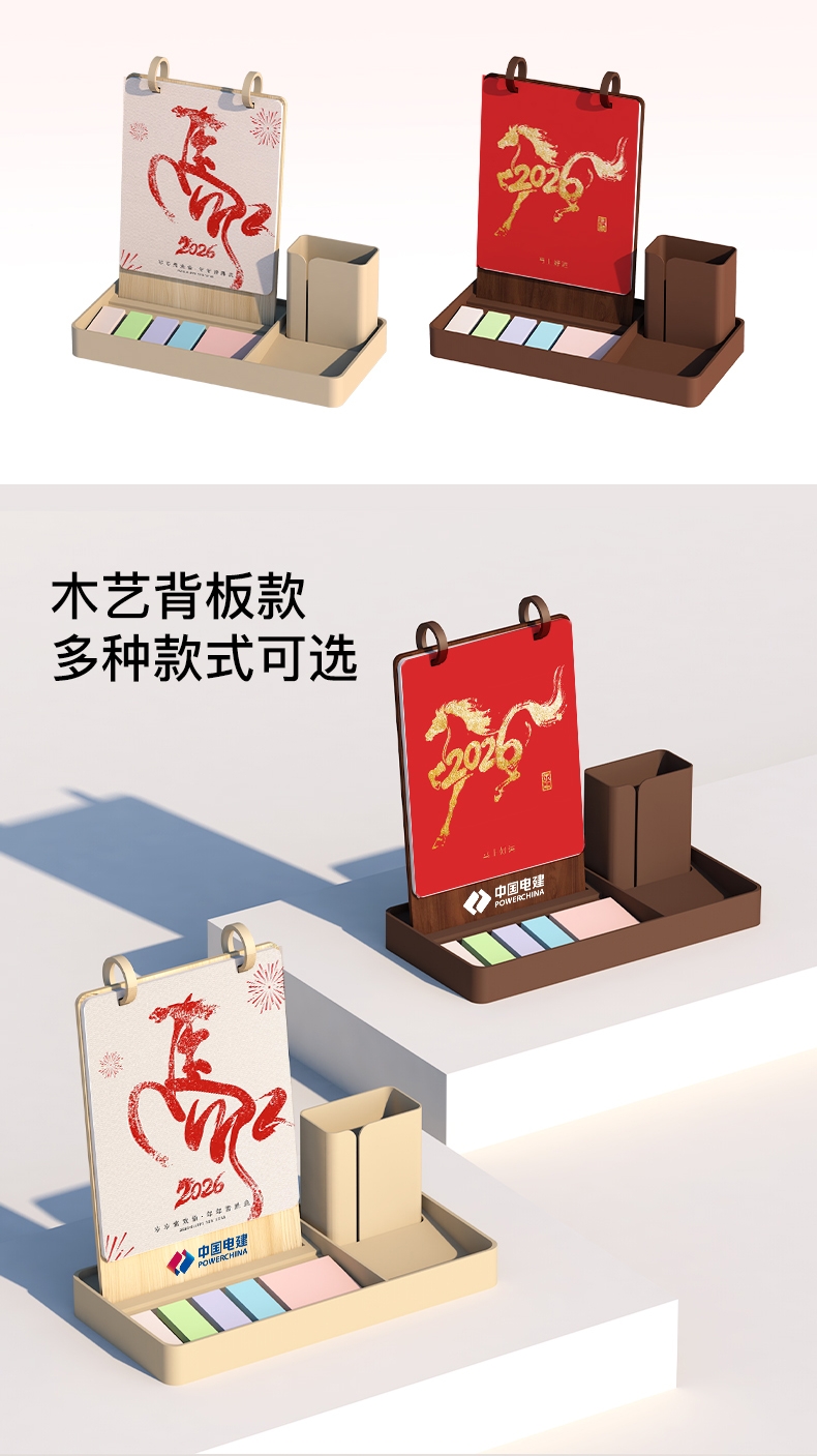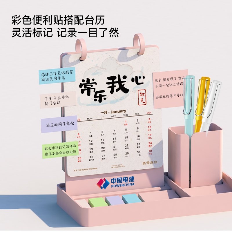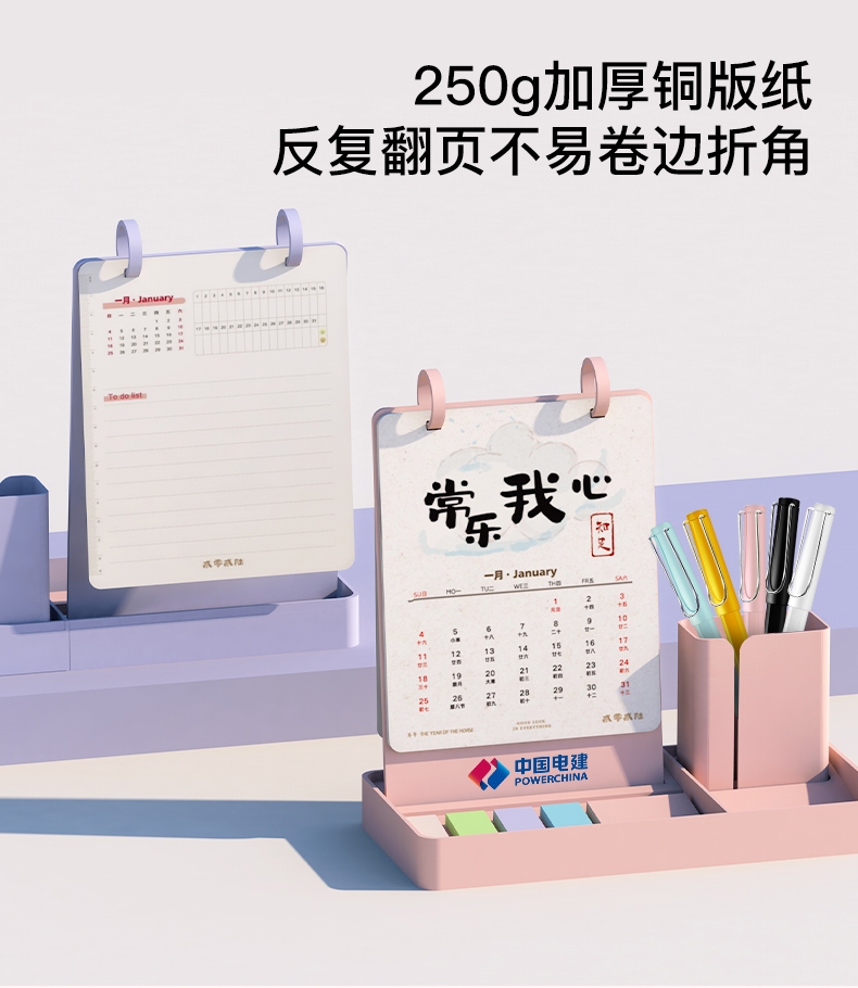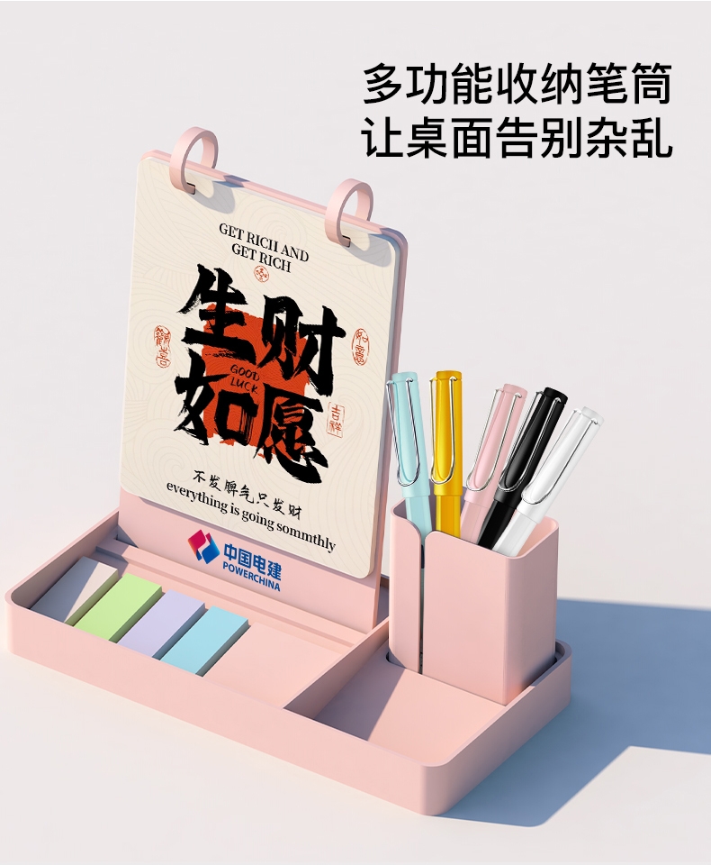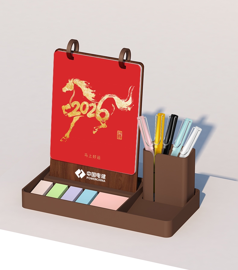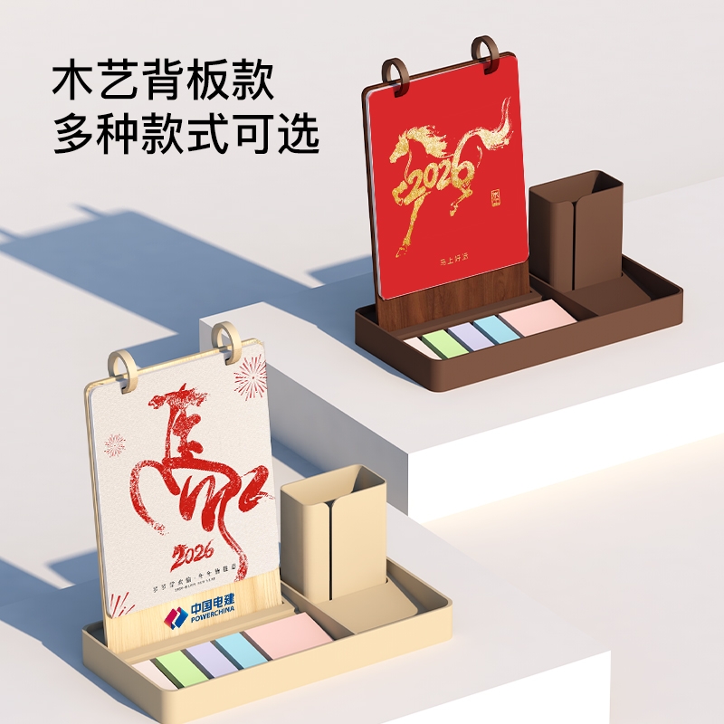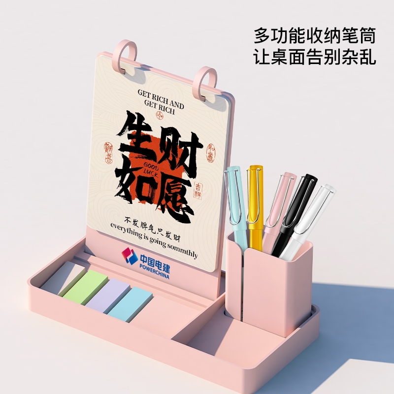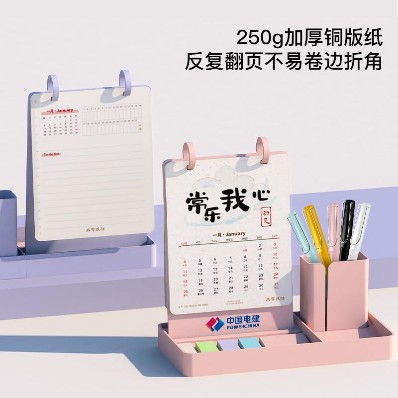 新款简约带笔筒收纳可定制台历