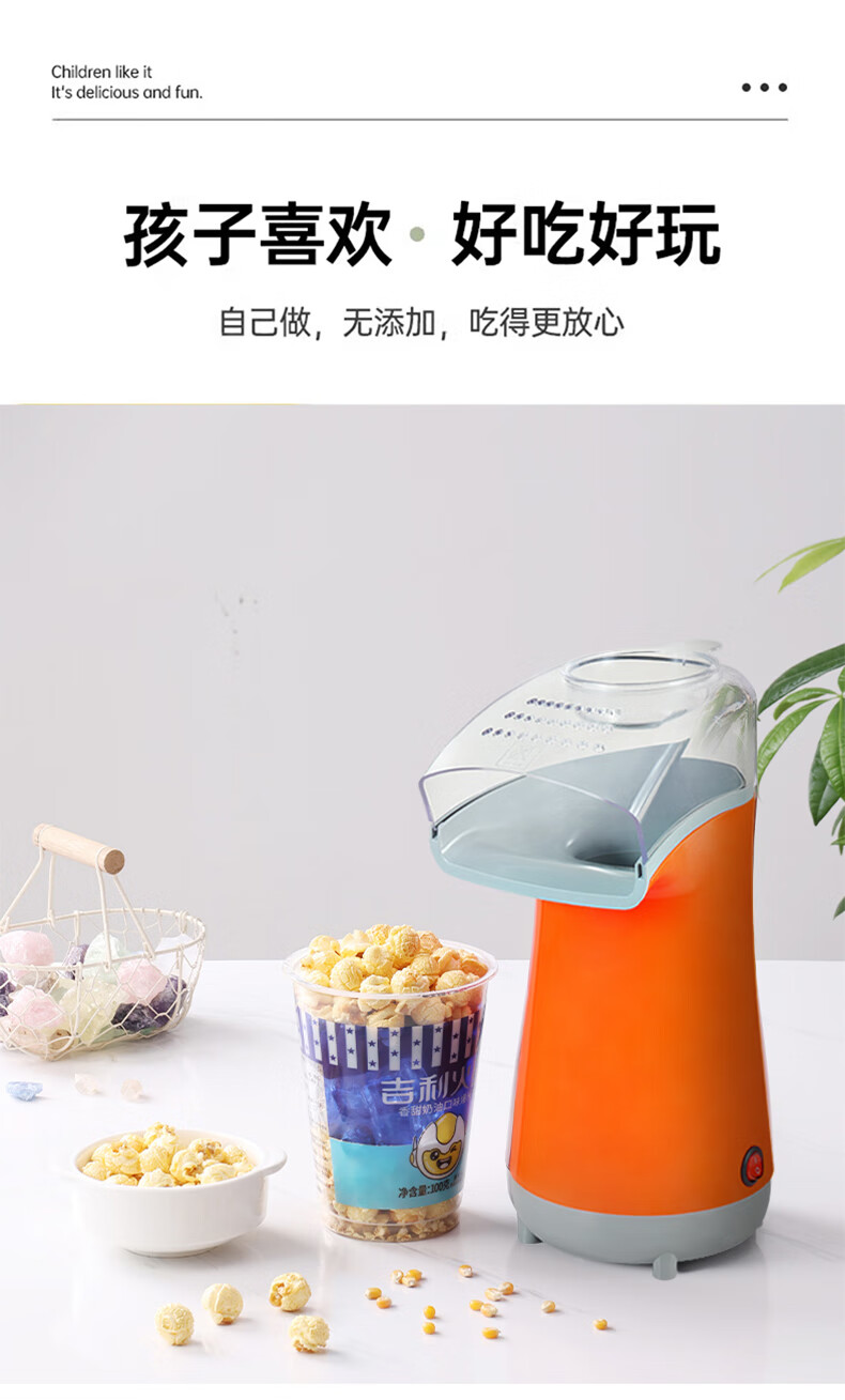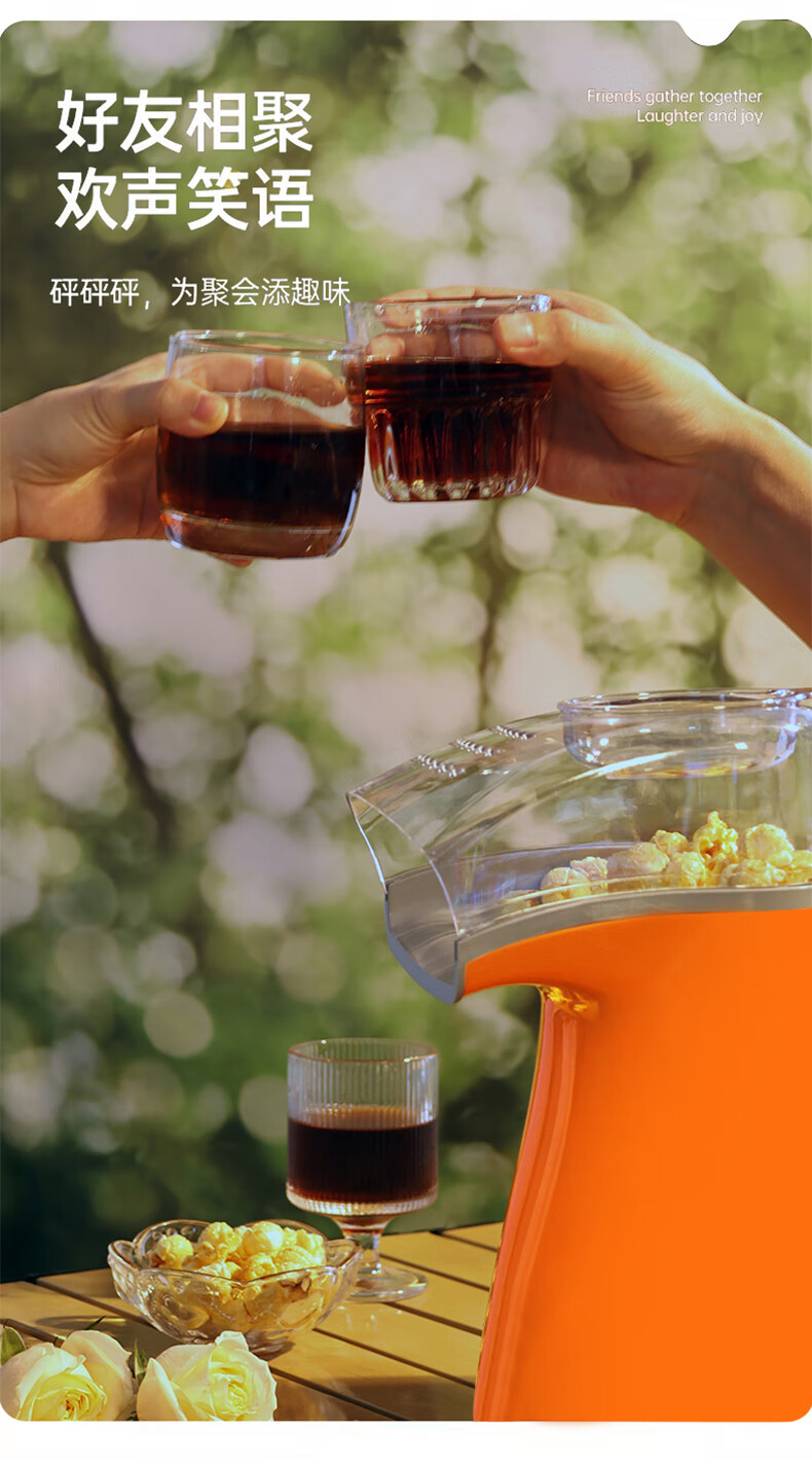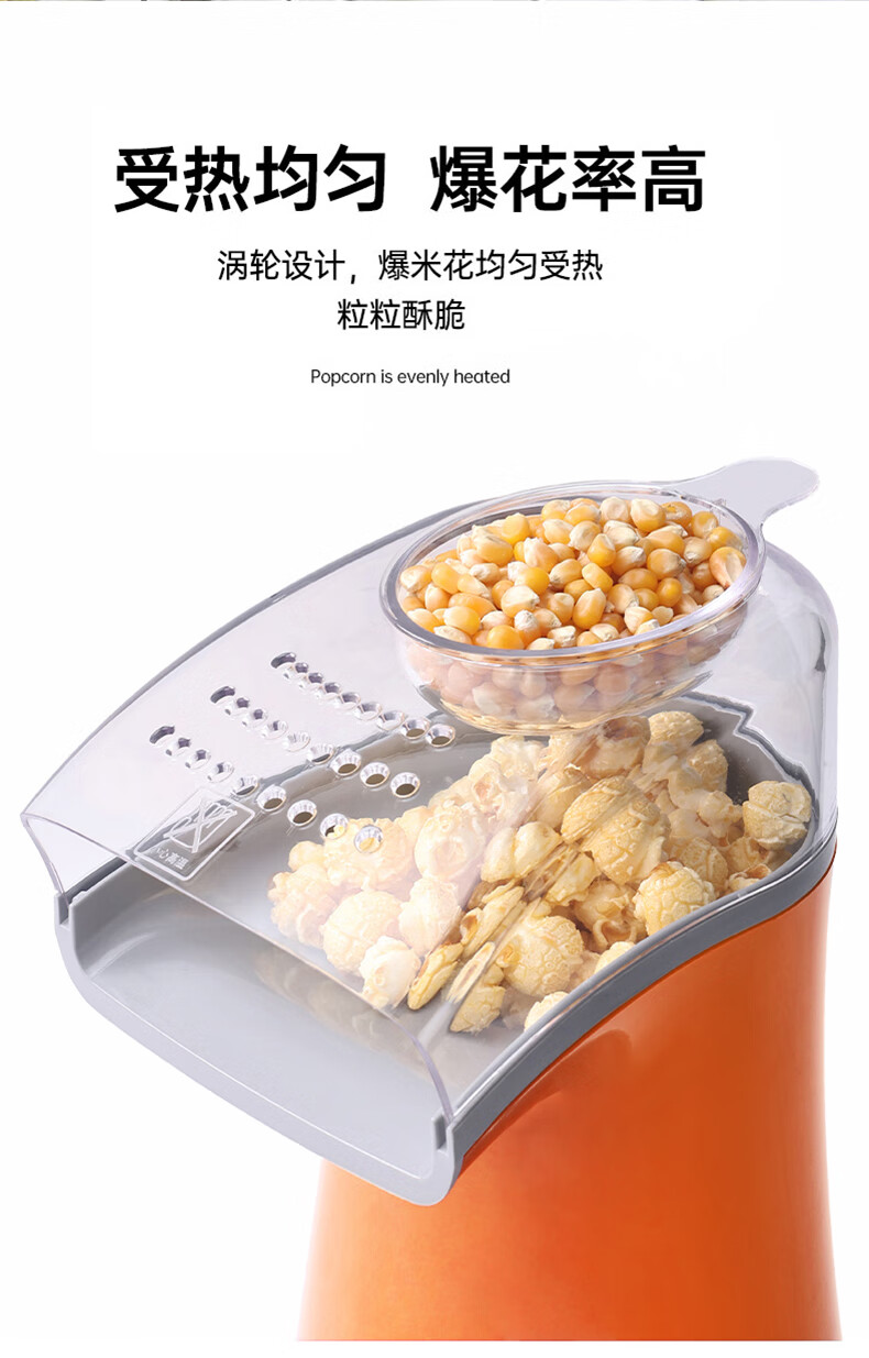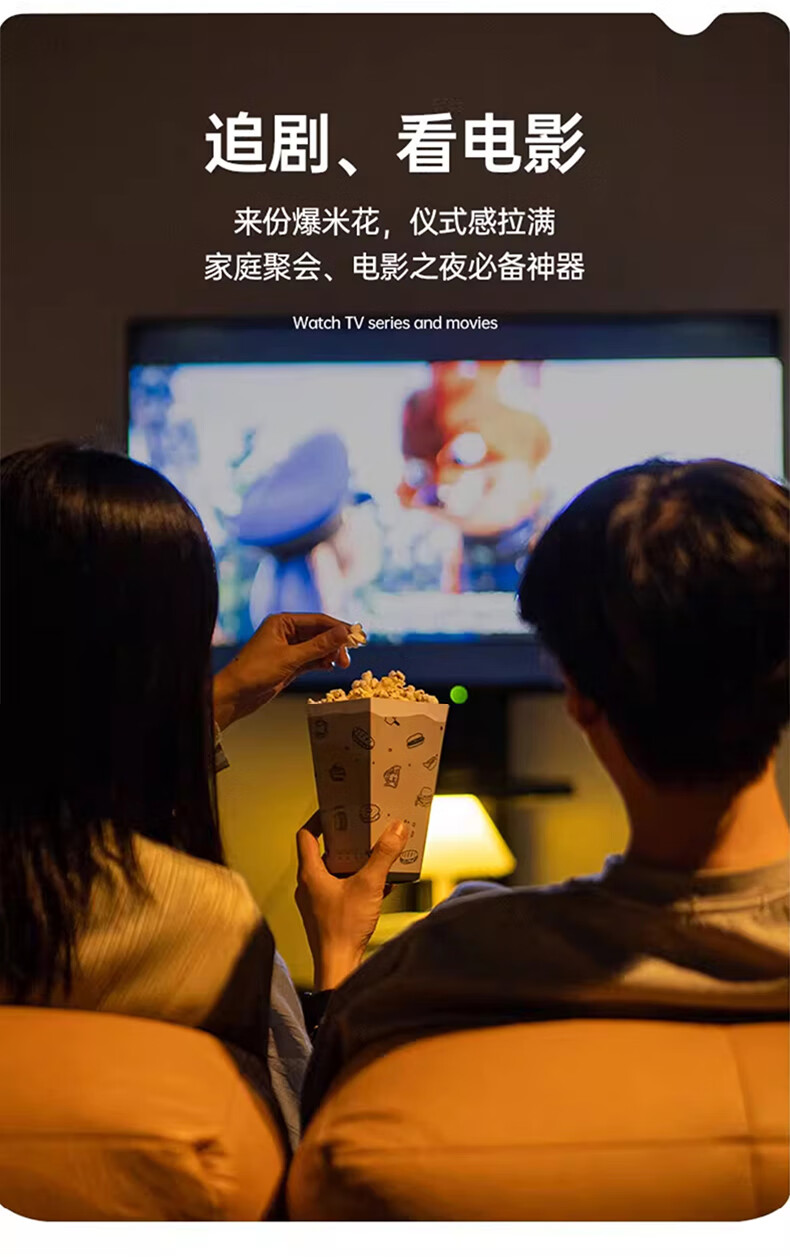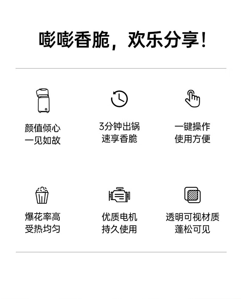 受热均匀,爆米花效率高;一键操作,简单便携;自己动手,欢乐共享