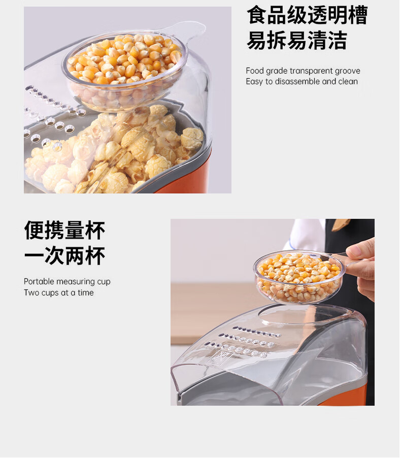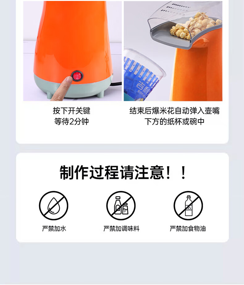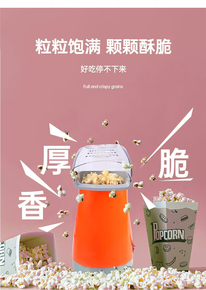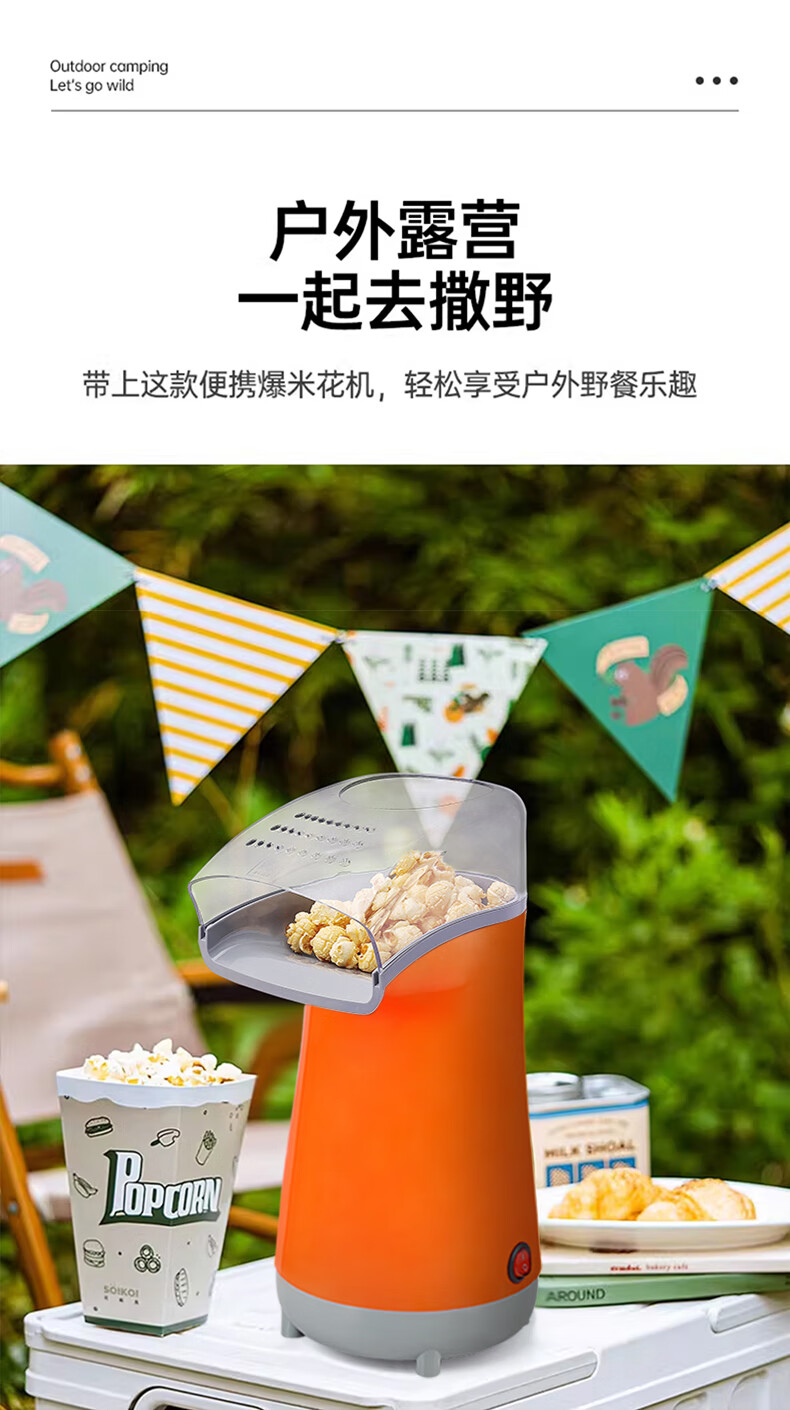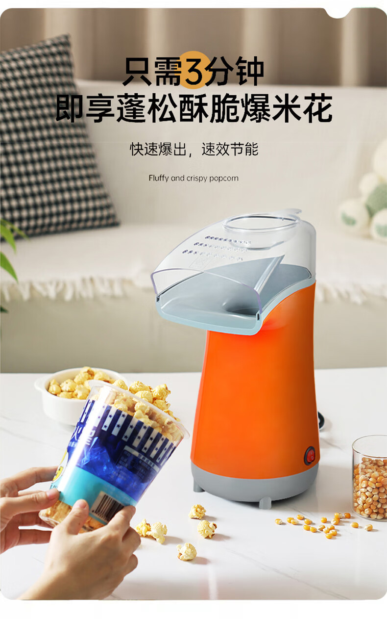 受热均匀,爆米花效率高;一键操作,简单便携;自己动手,欢乐共享