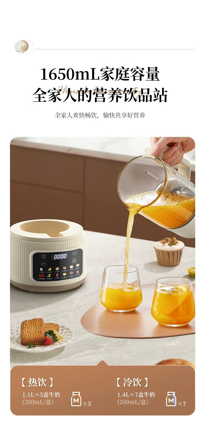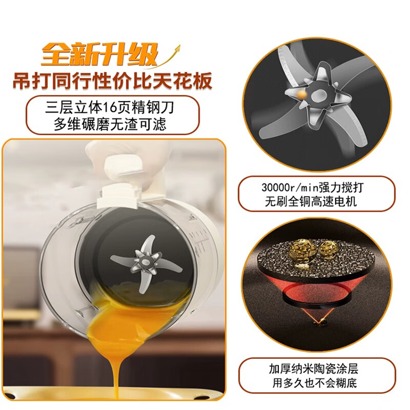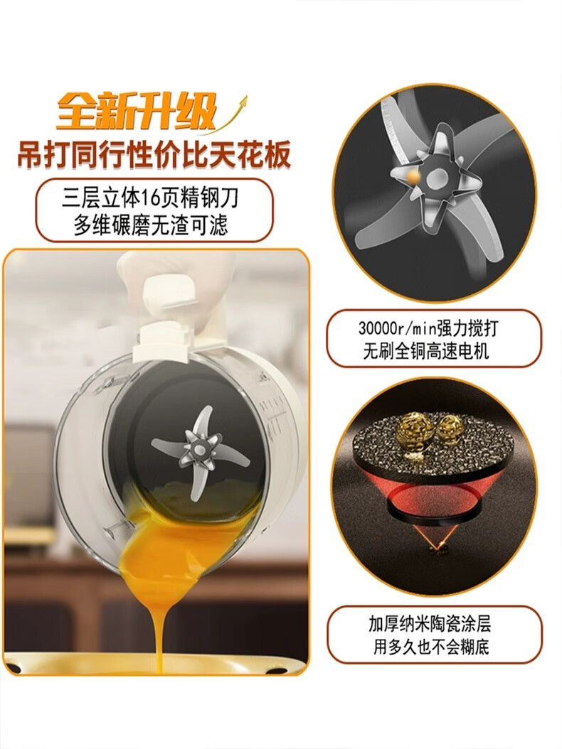 AI自动清洗;纳米陶瓷不沾底;1.65升容量静音真破壁