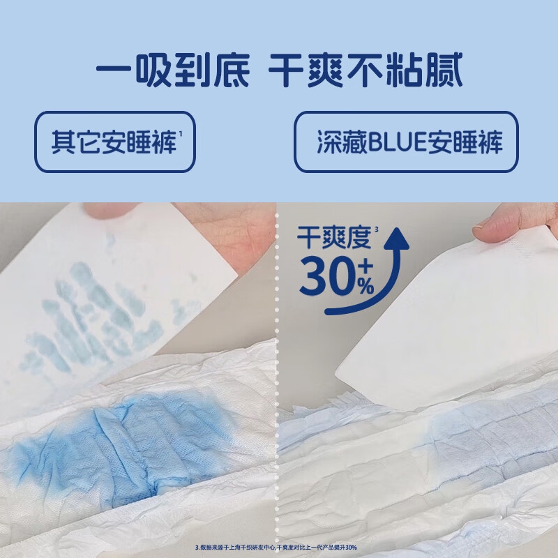 干爽防漏整夜深藏不漏;吸量升级量大安心睡;满囤包裹安睡不漏